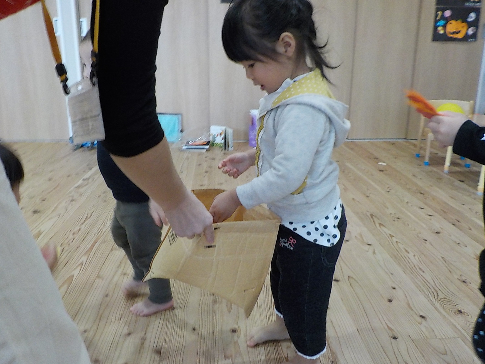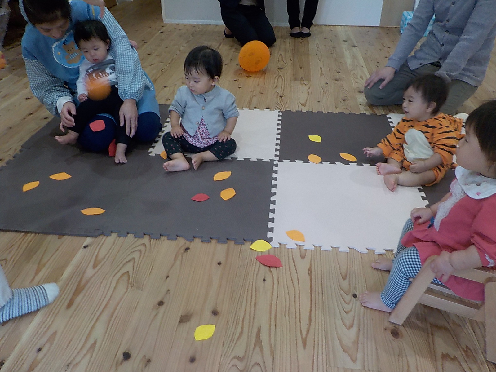 今日は 秋の色づいた葉っぱがヒラヒラとふってきて 大喜びの子どもたちでした(^▽^)/