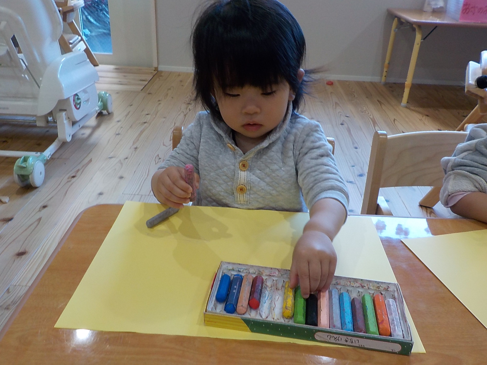 Iちゃんはとクレヨンで描く時の音を楽しみながら、”てん てん てん”をいっぱい描いていました♬