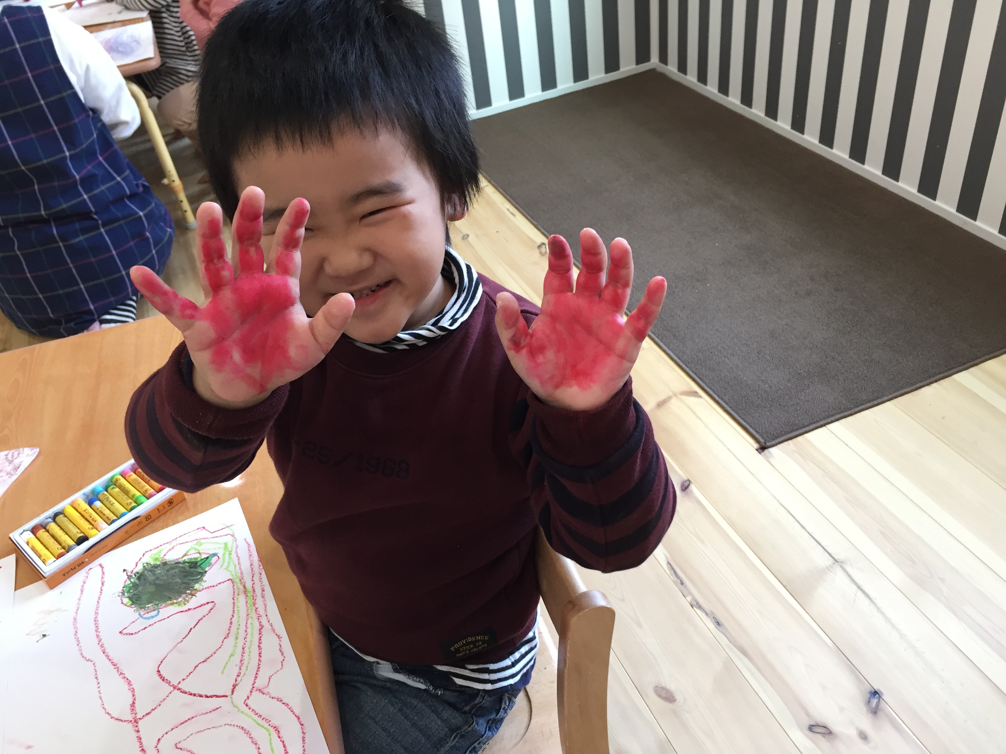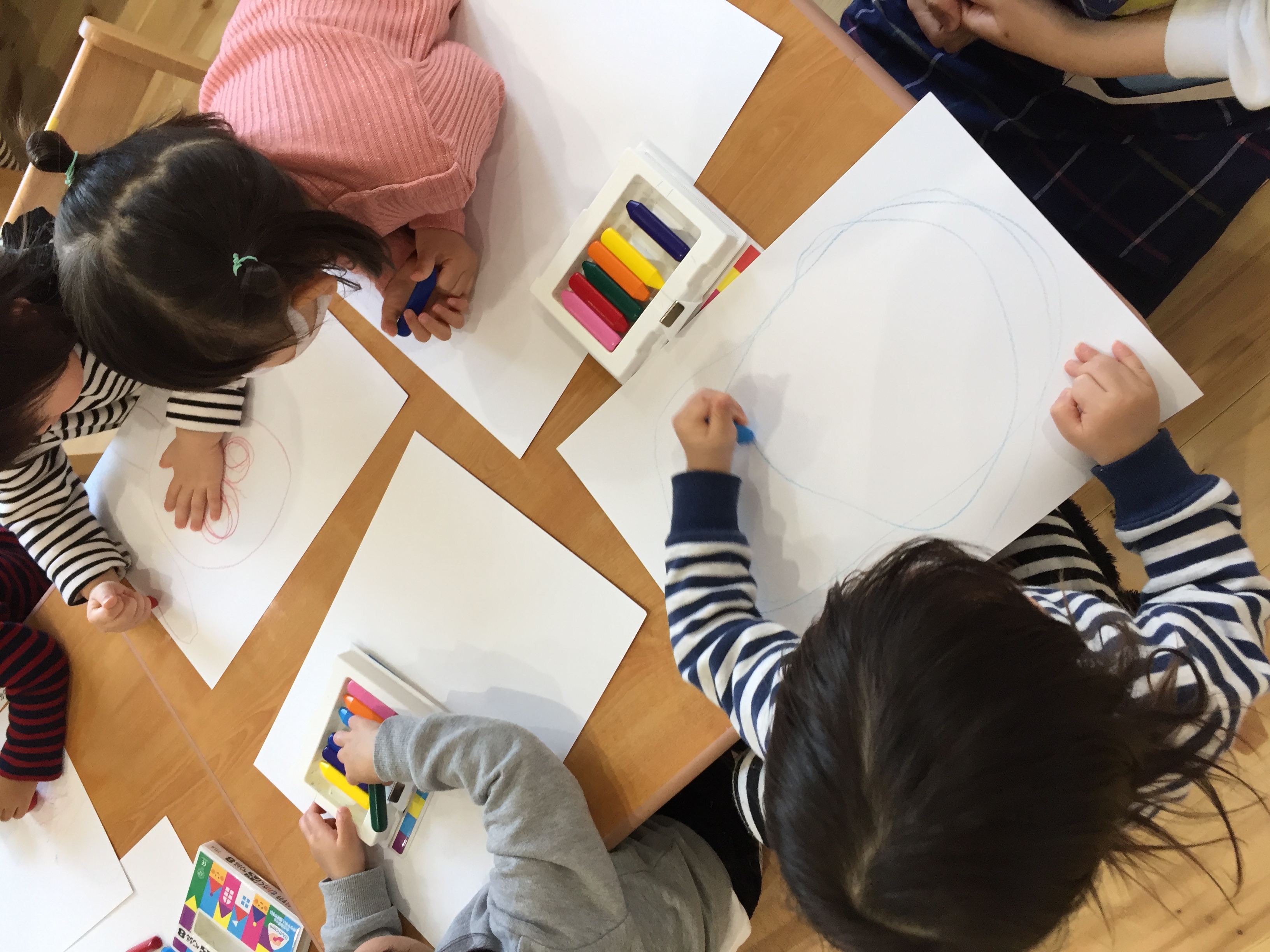 朝のおやつは2歳児さんまでなので朝のおやつの時間お姉ちゃんたちはお絵かき(*^-^*)