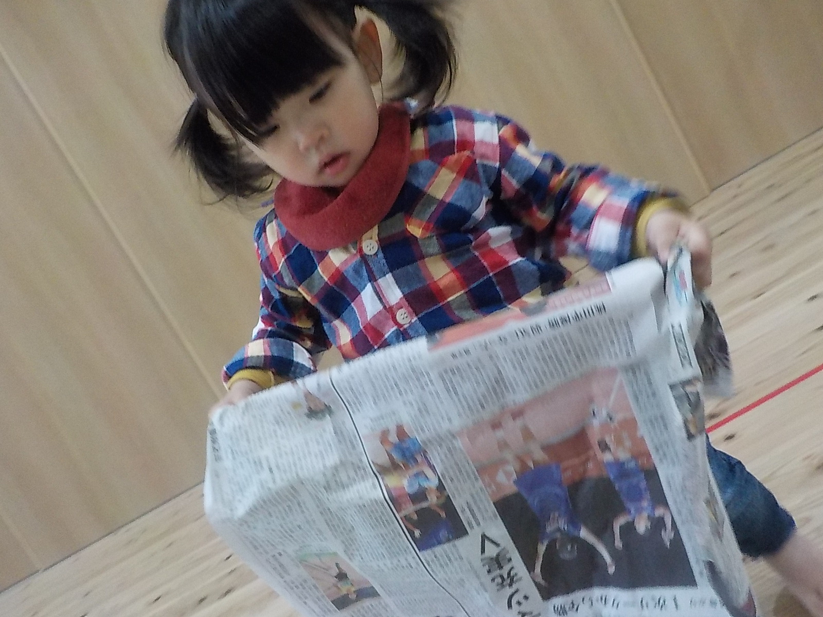 新聞紙大きいね!何が書いてあるのかな?気になるね(≧▽≦)