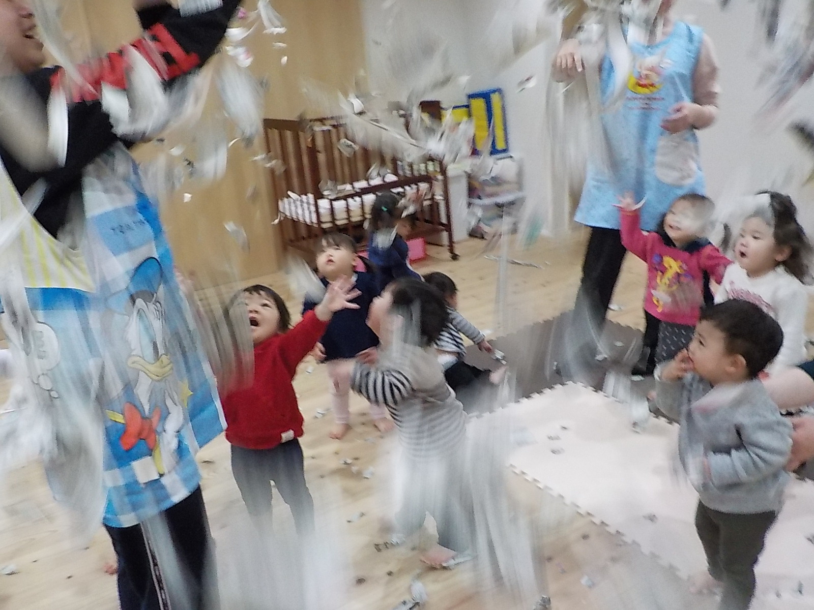 今日は新聞紙でたくさん遊んで楽しかったね♬
