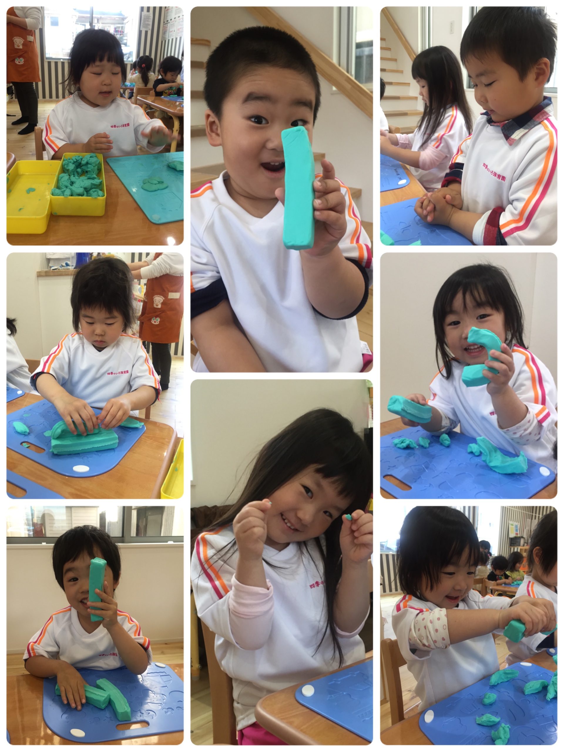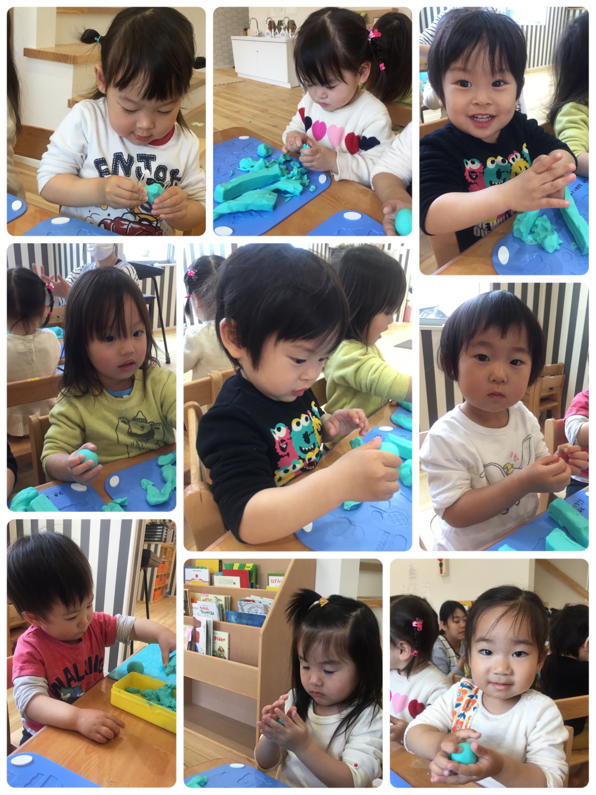 今日は朝からお散歩~☆彡 しっかり自分の足で歩けてます(*^^*) そして帰ってきたら… 大きなお友達は粘土遊び(*^-^*) また明日もたくさん遊ぼうね♡