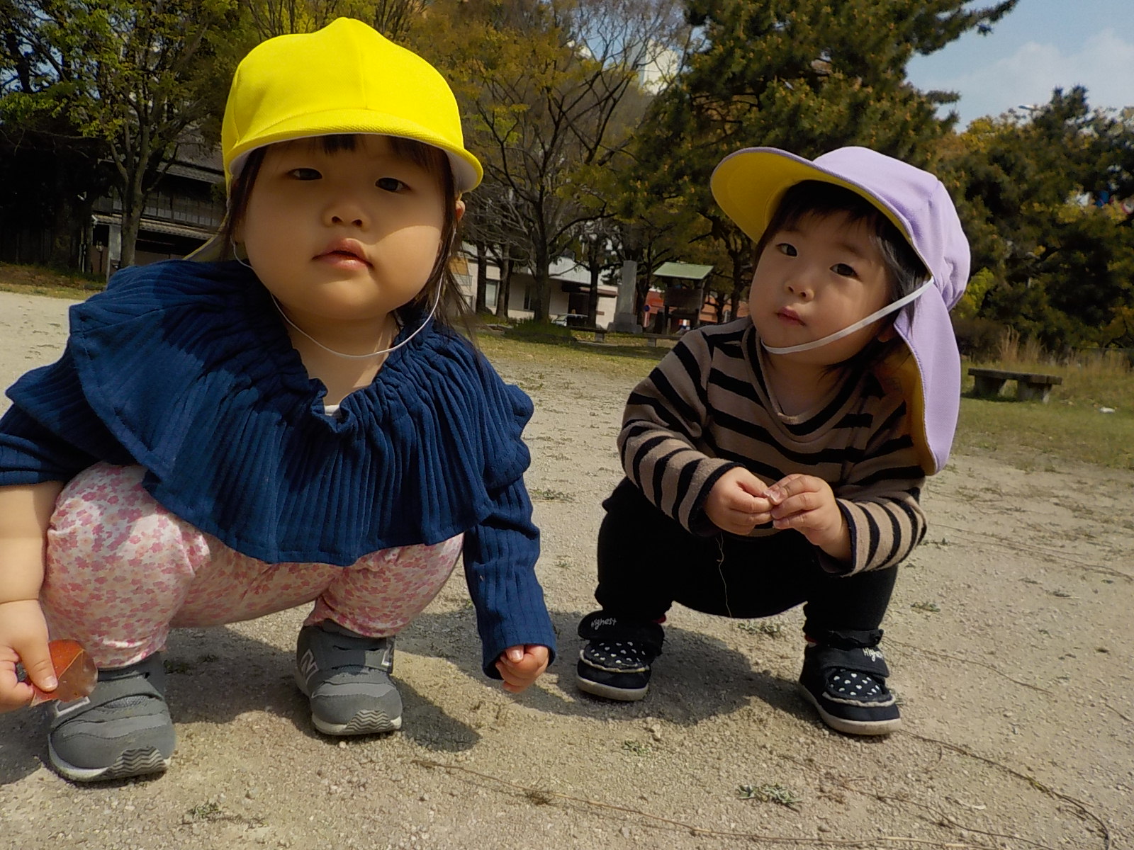 なにか見つけたのかな??仲良く並んで地面を見ていました!!