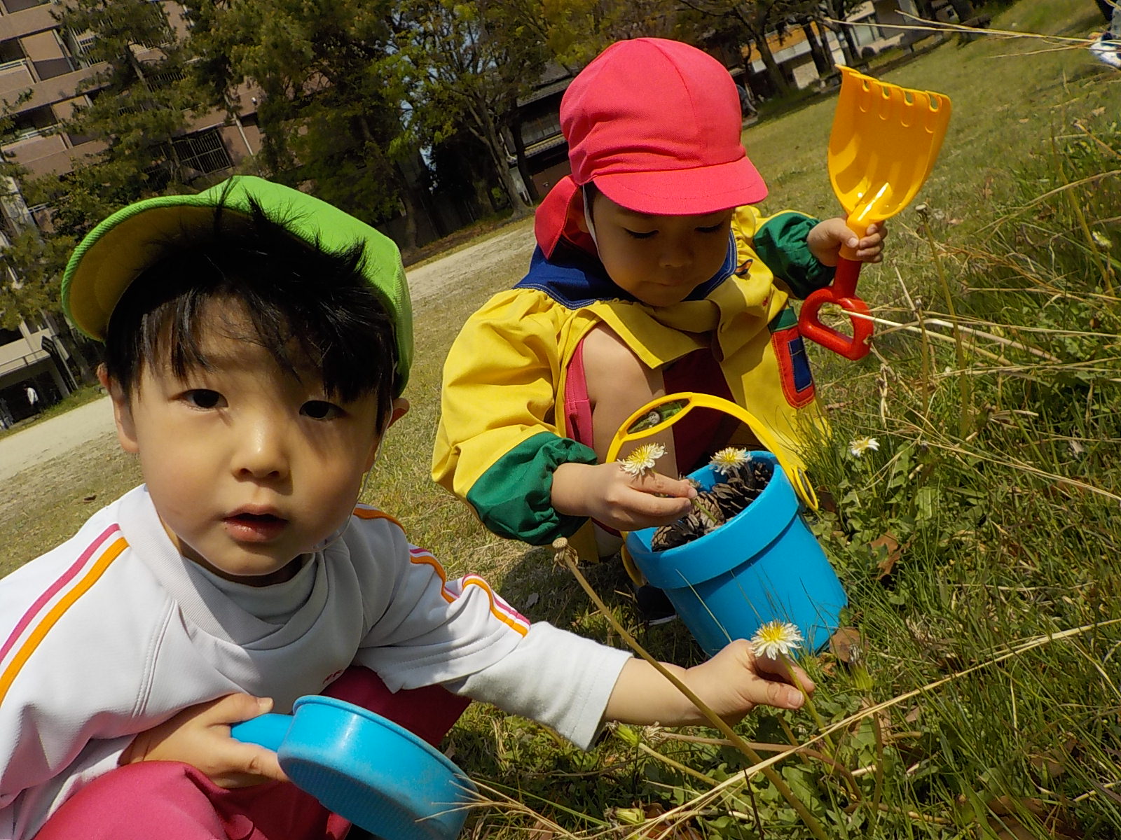 T君はたんぽぽを見つけましたよ!!「先生!見ててね!ふ~っ!!」と飛ばしていました♬