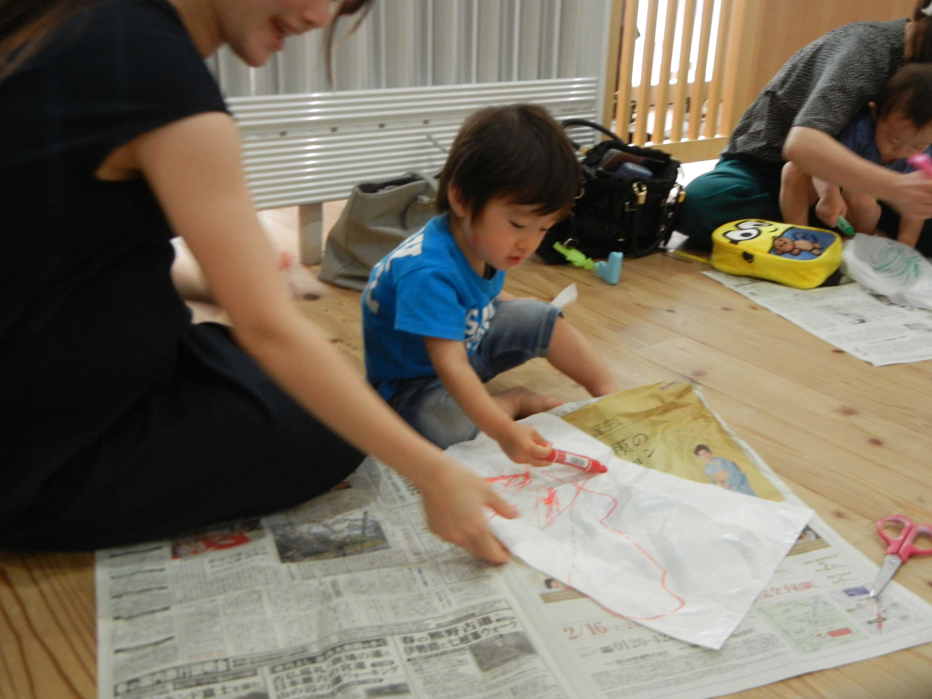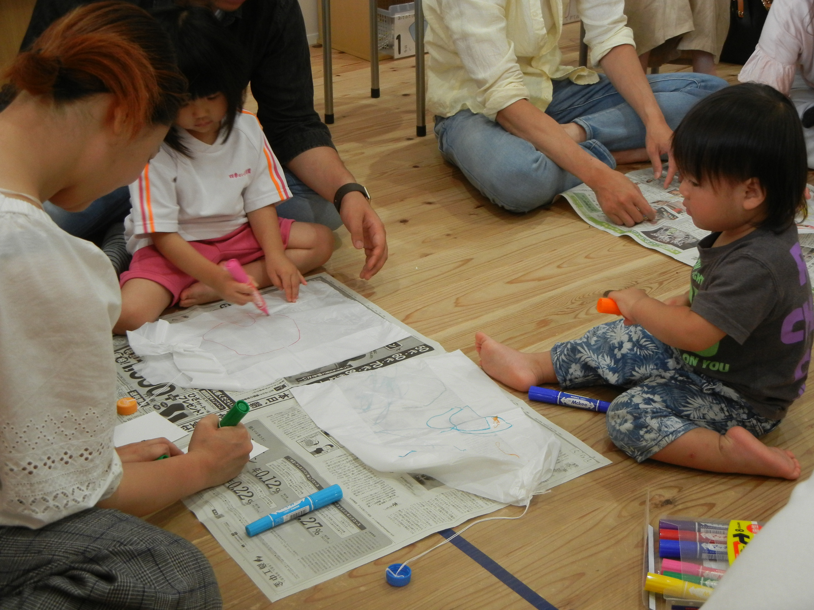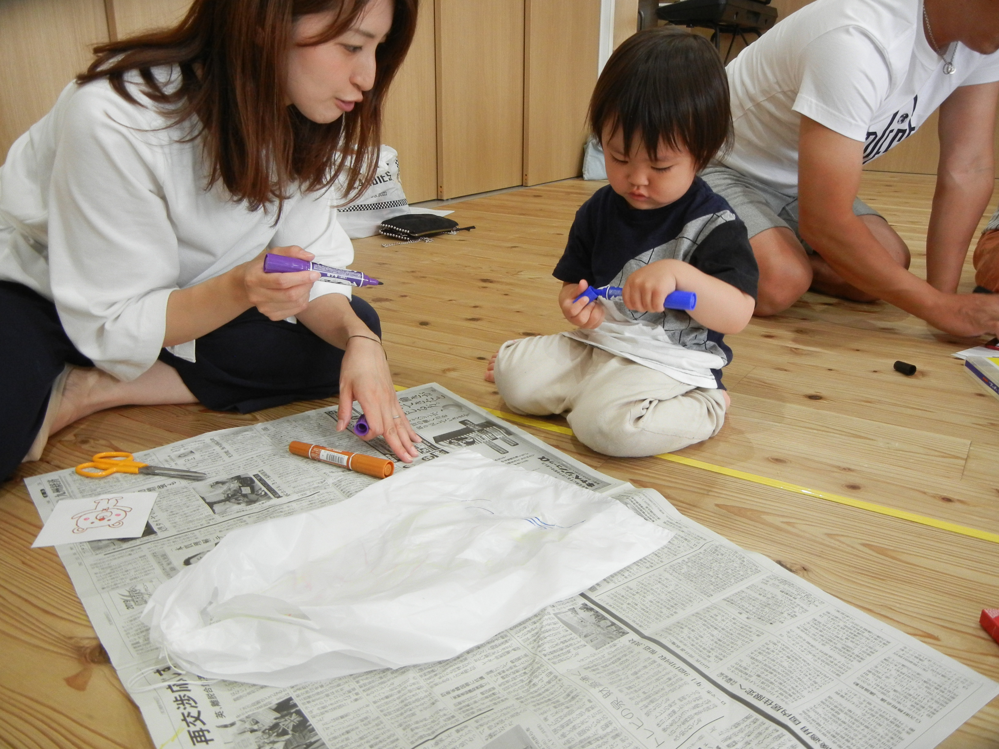 楽しいジャンケン列車のあとは、パラシュート作り!