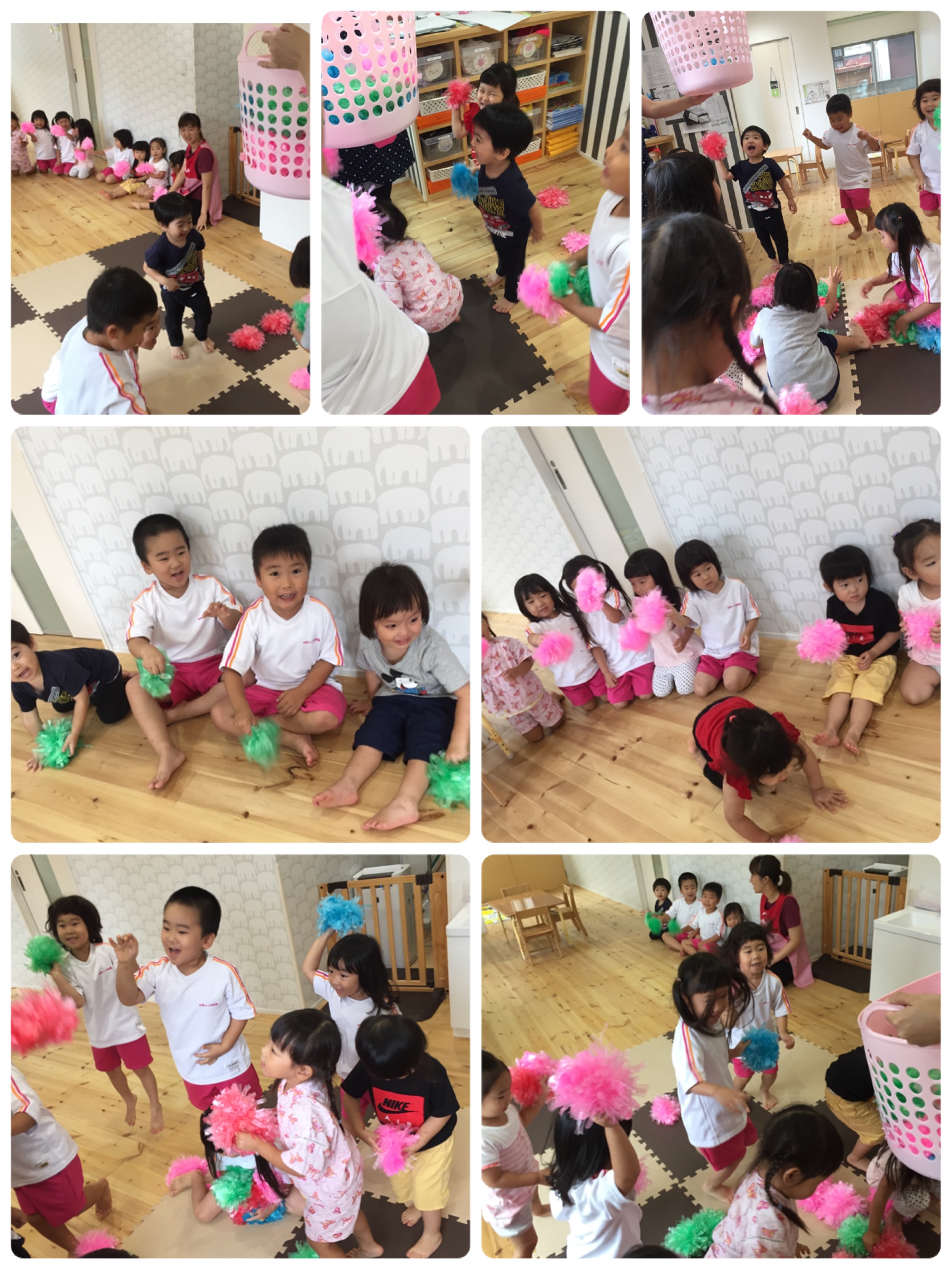 男の子と女の子に分かれてする時はポンポンを持って応援、、、