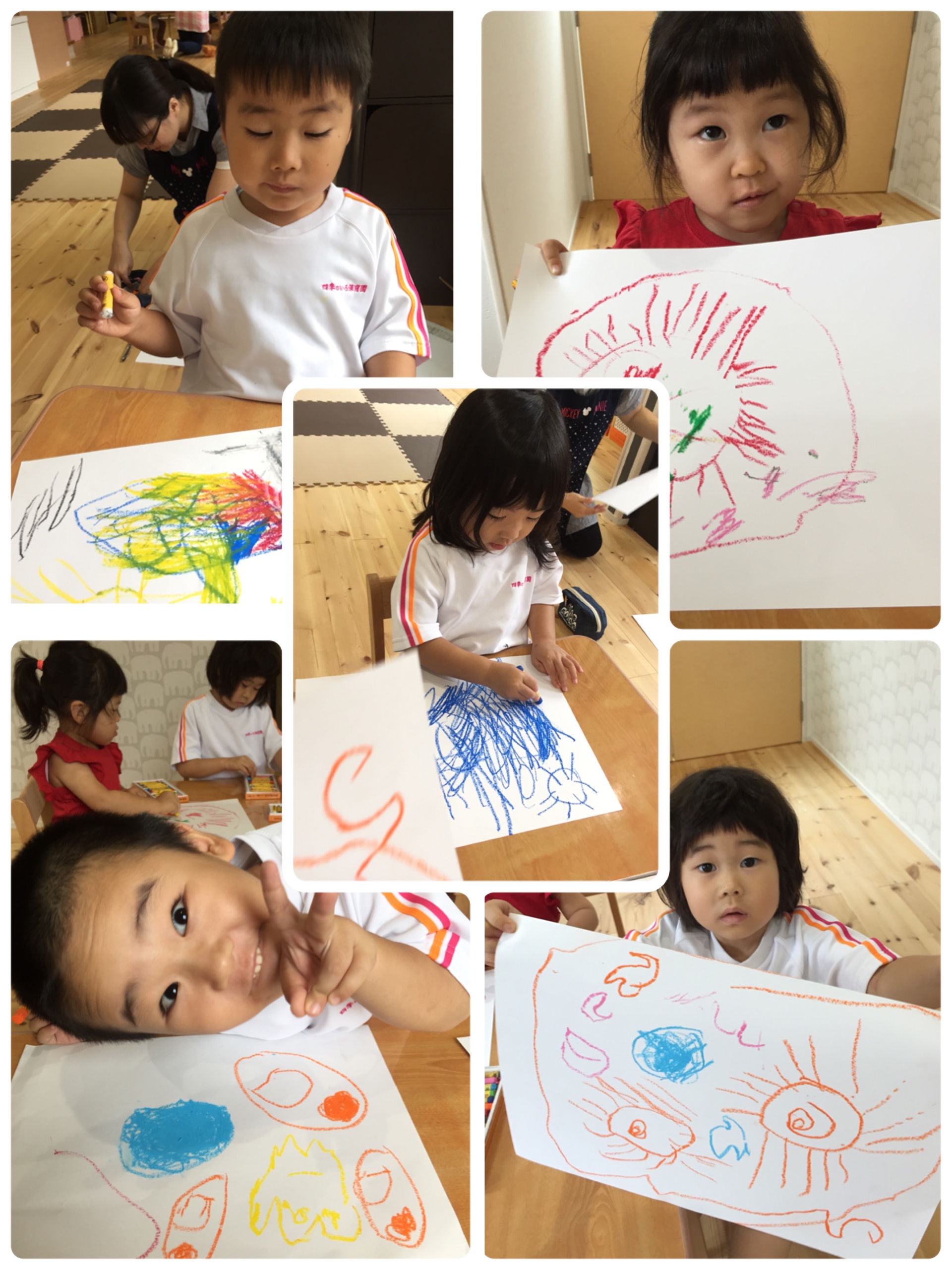 一方その頃あおぞら組さん、にじ組さんは運動会で飾る万国旗を作っていました!