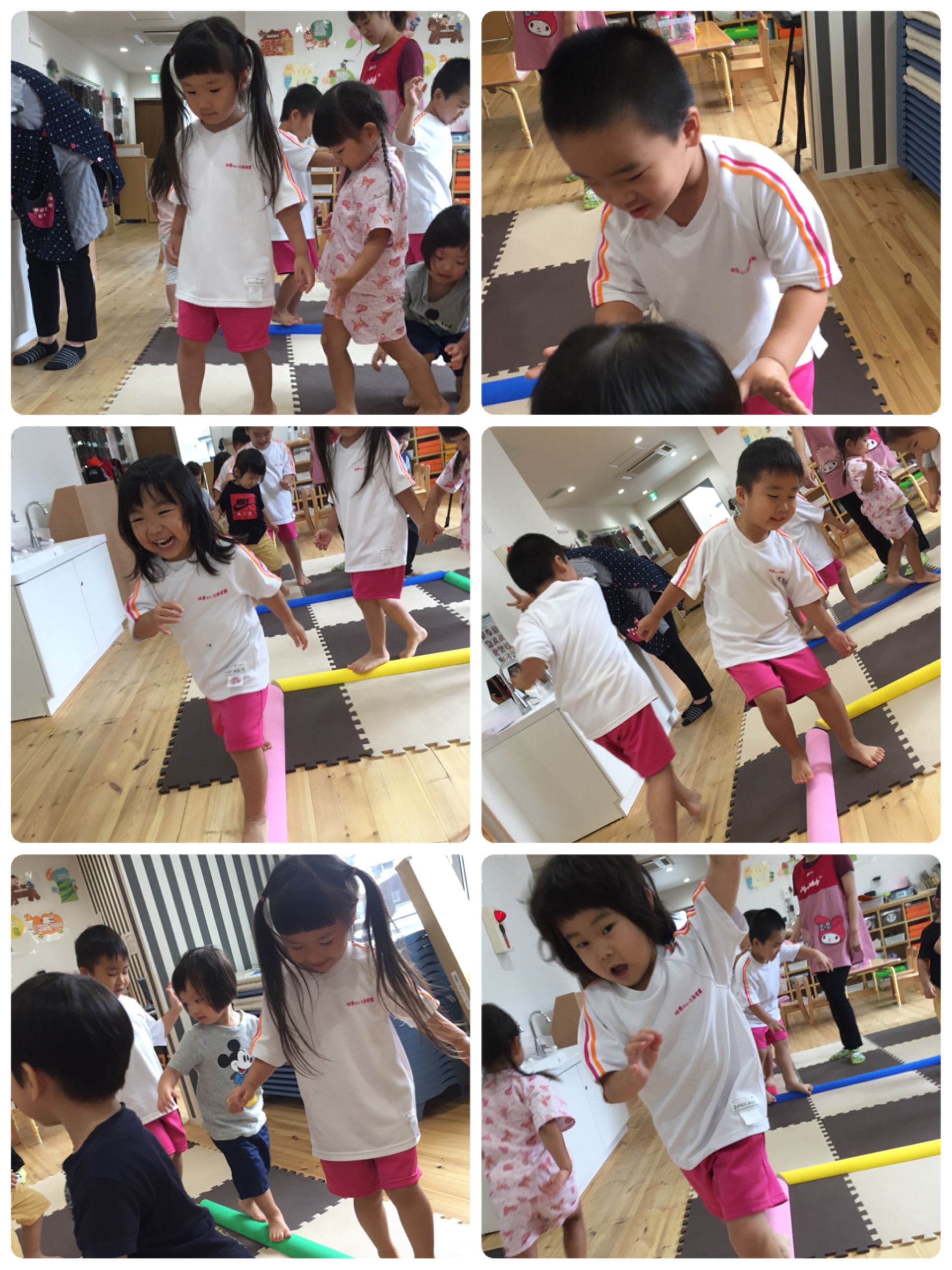 つき組さん、あおぞら組さん、にじ組さんはみんなで平均台をします(o^^o)♪