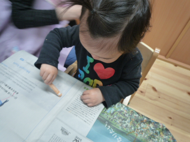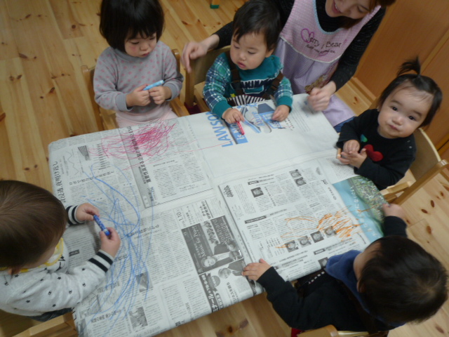 みんなで新聞紙にぐにゃぐにゃ~と楽しく描きました(*^_^*)