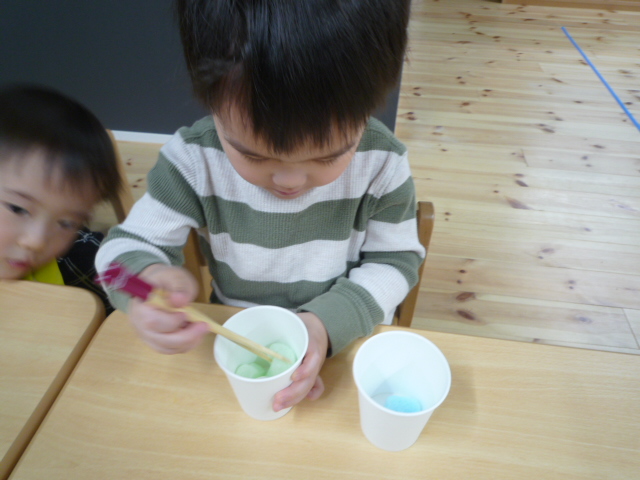 お箸やスプーンを使った遊びをしました(*^_^*)うさぎ組さんたちは集中して遊んでいました(^o^)