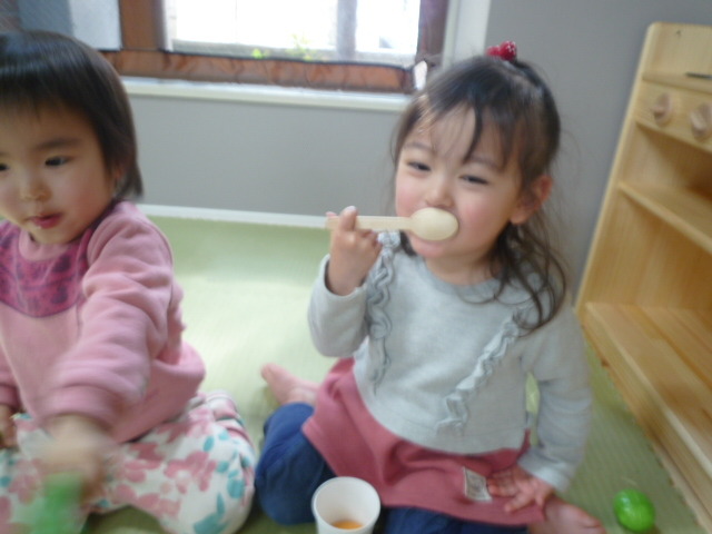 りす組・・・スプーンを使っておままごとあそびをしました(*^_^*)みんな楽しそうに遊んでいましたよ(^o^)