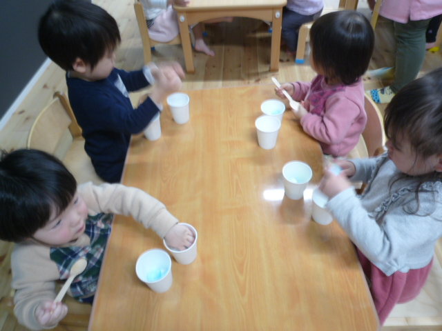 りす組・・・スプーンを使っておままごとあそびをしました(*^_^*)みんな楽しそうに遊んでいましたよ(^o^)
