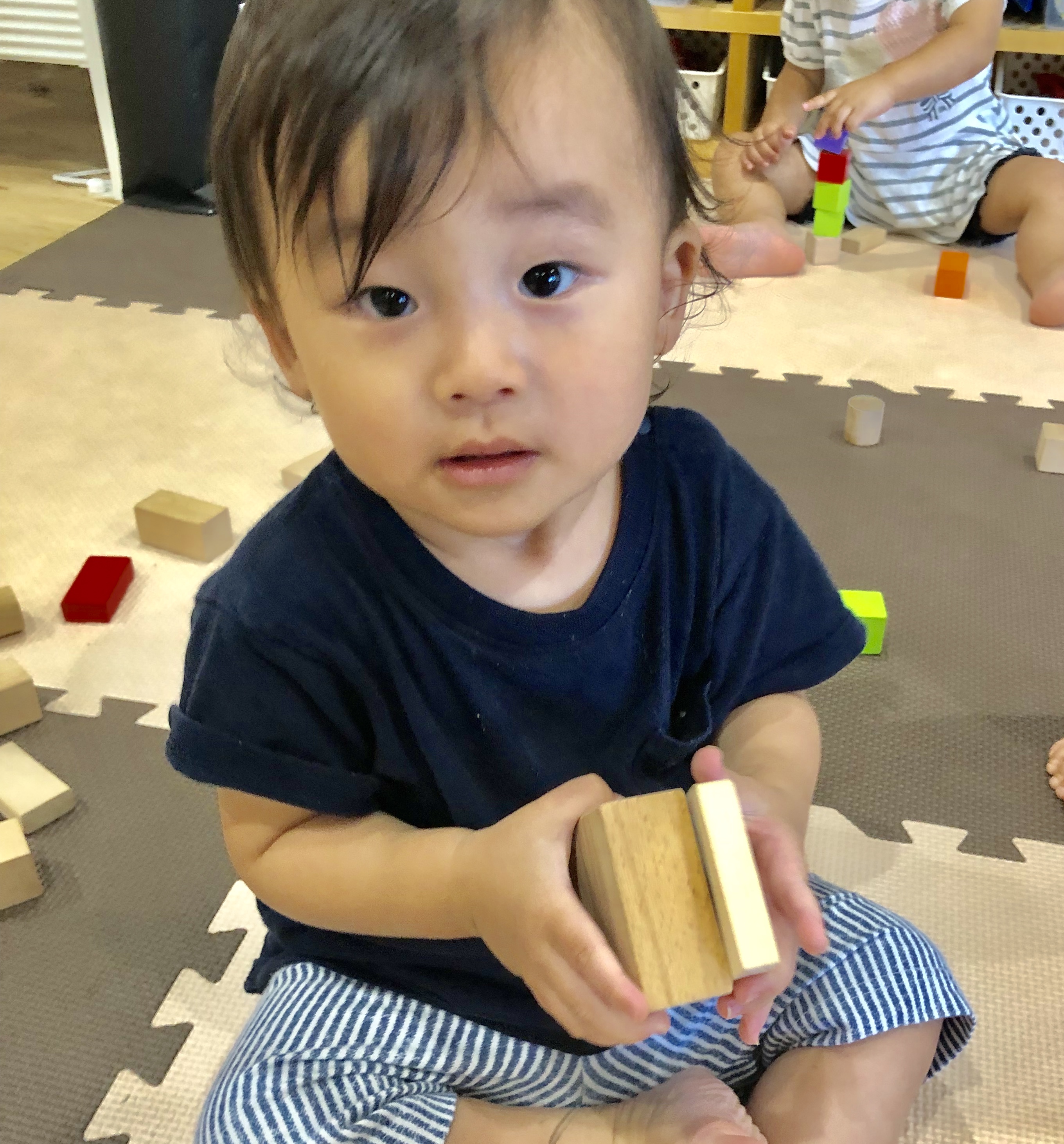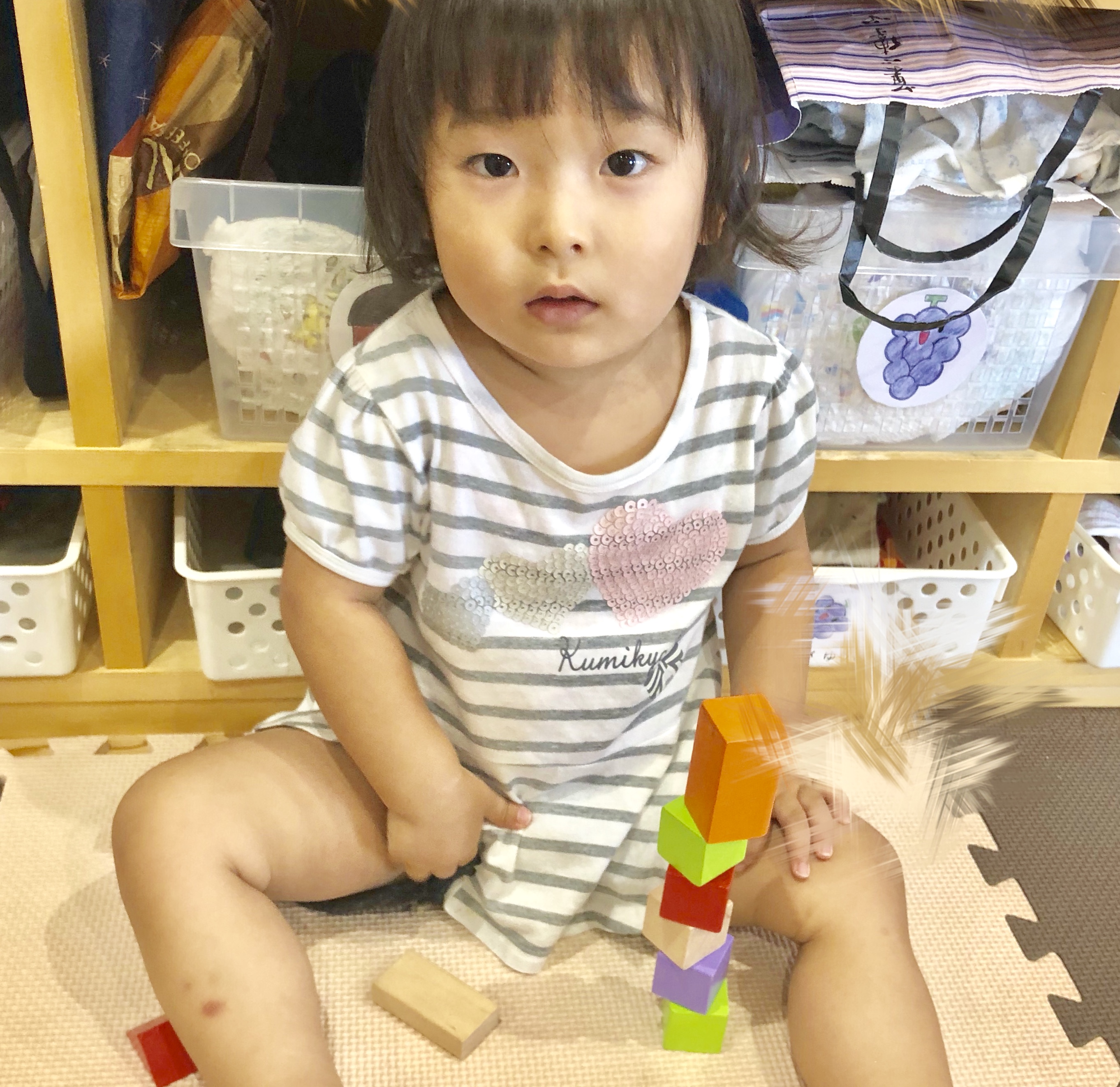 上手に積み木を積んでいます(﹡ˆ﹀ˆ﹡)♡