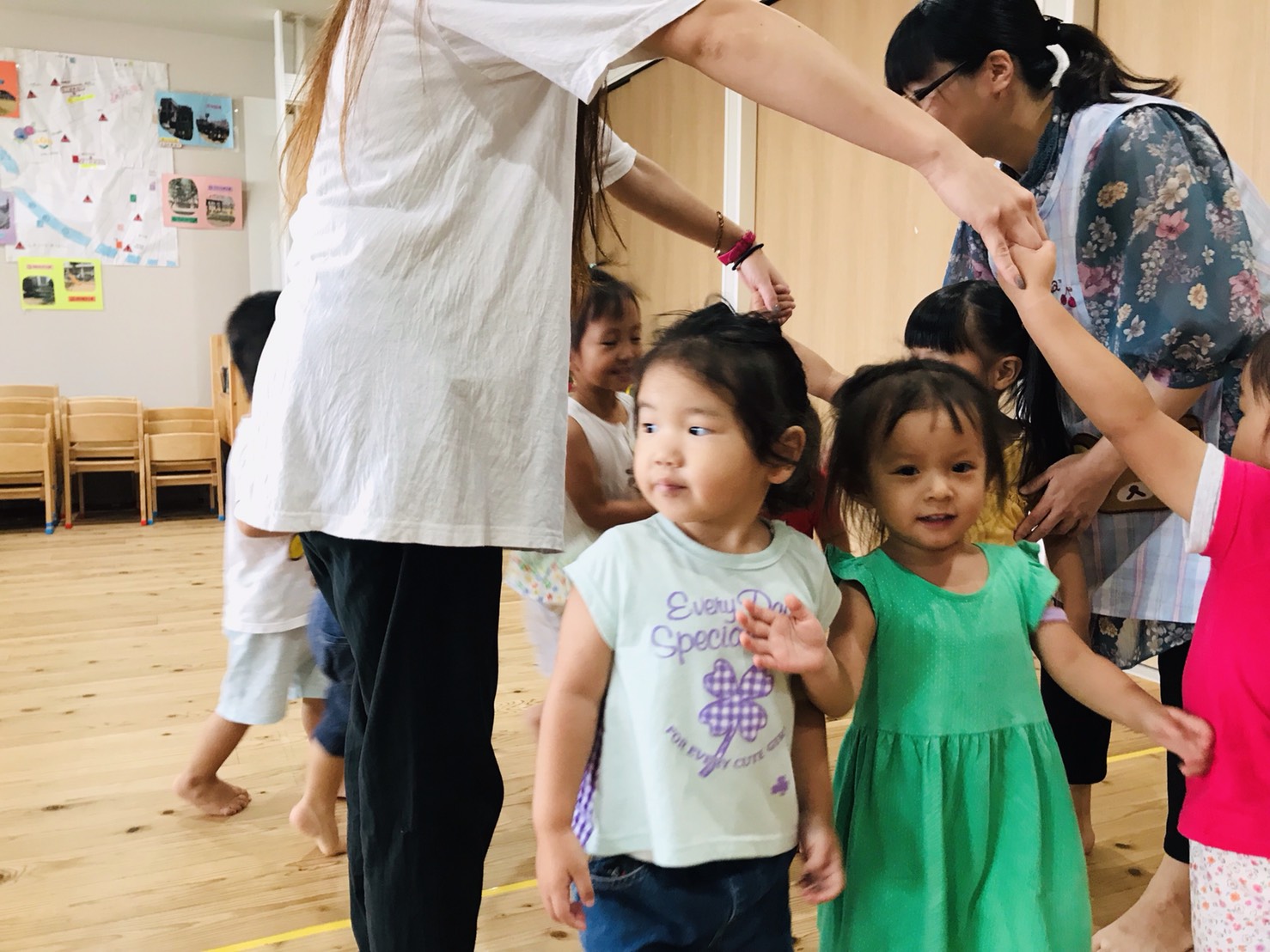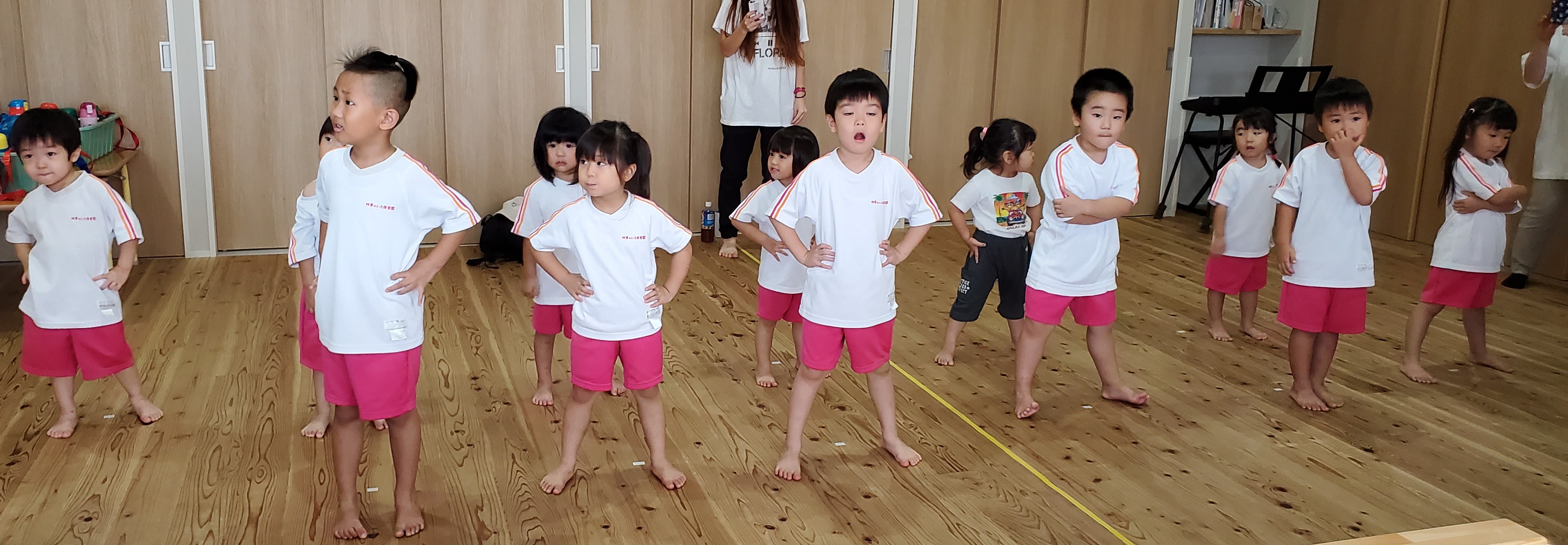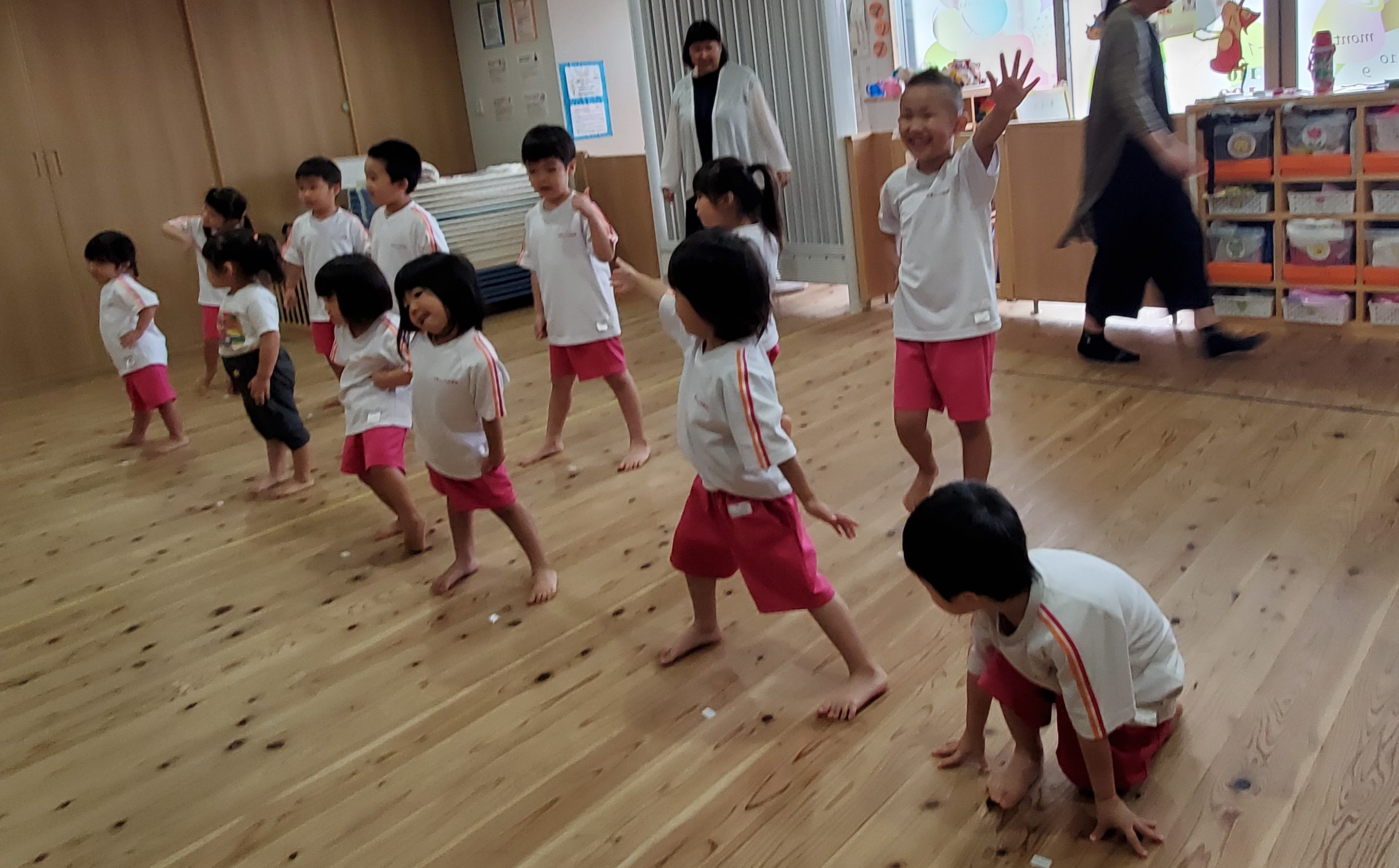 つき組さんは元気いっぱい先生の真似をして踊り、楽しみました!