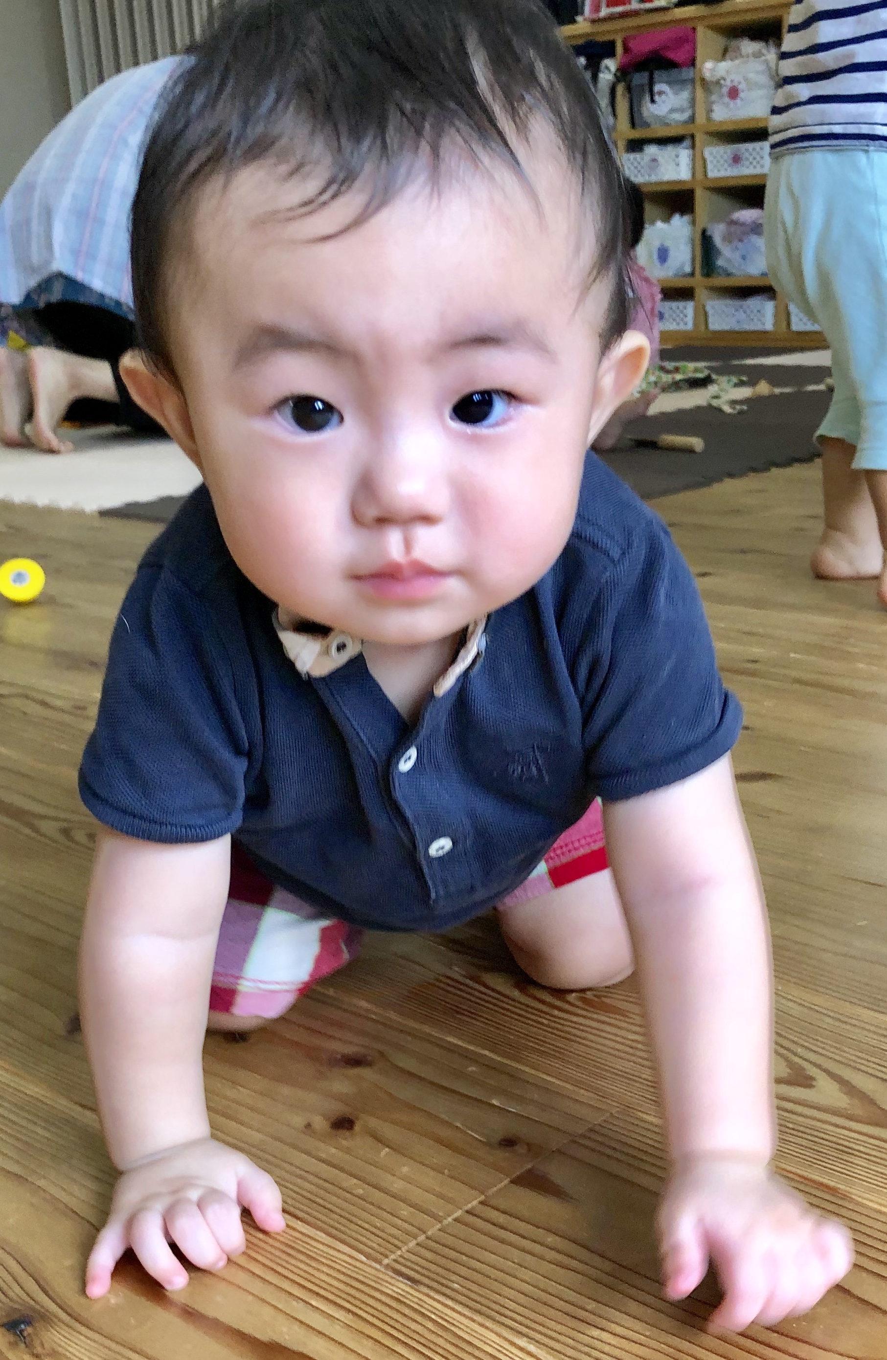 Sくんは、ハイハイでお部屋の中を探検中・・・(﹡ˆ﹀ˆ﹡)♡