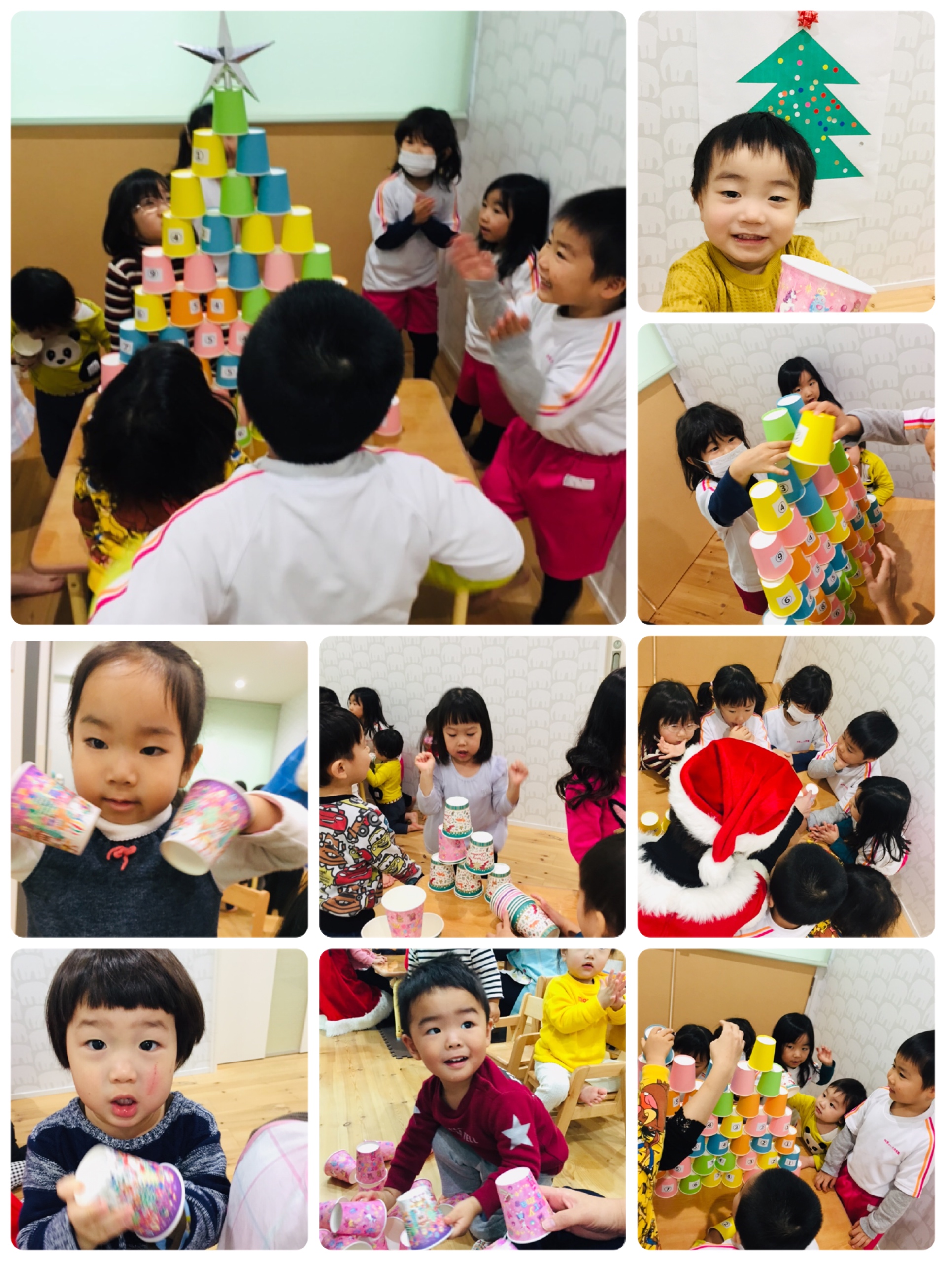 みんな何度も積み重ねて大きなツリーの完成です♪