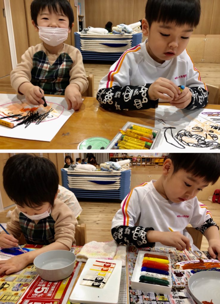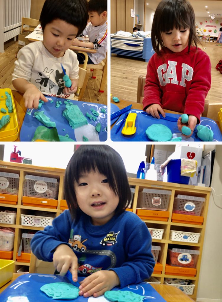 みんなで列車になって、かもつれっしゃの歌を歌いました♡そのあとは、あおぞら組さんは粘土をしました!
