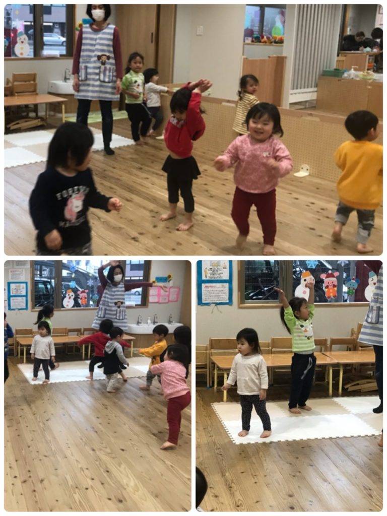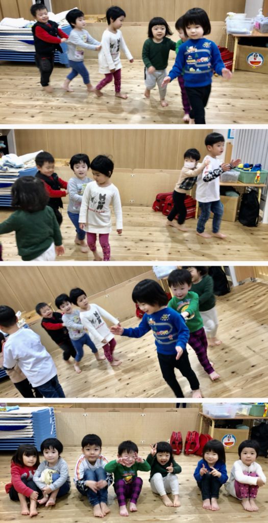 つき、あおぞら、ひかり組さんは最初はリトミック遊びをしました!