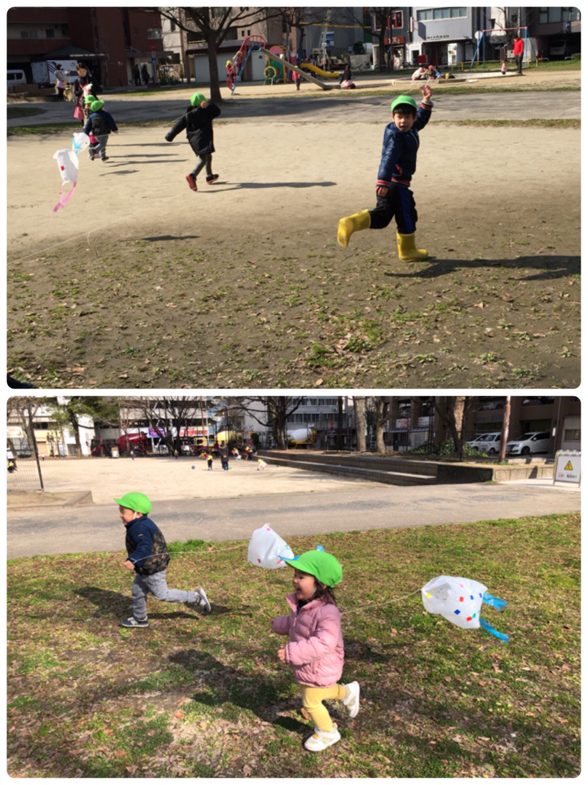 今日は朝から冷えていましたね(>_<) でも子ども達は元気一杯! 今日は以上児さんはピアニカの練習をしました(*^^)v その後は公園へ(^^) お相撲に、凧あげをしましたよ( ^)o(^ ) ひよこ、りす組さんも元気一杯でとび箱ジャンプやトンネルを使って遊びました! 今日も1日楽しかったね♪ 明日も元気一杯で登園して下さい☺