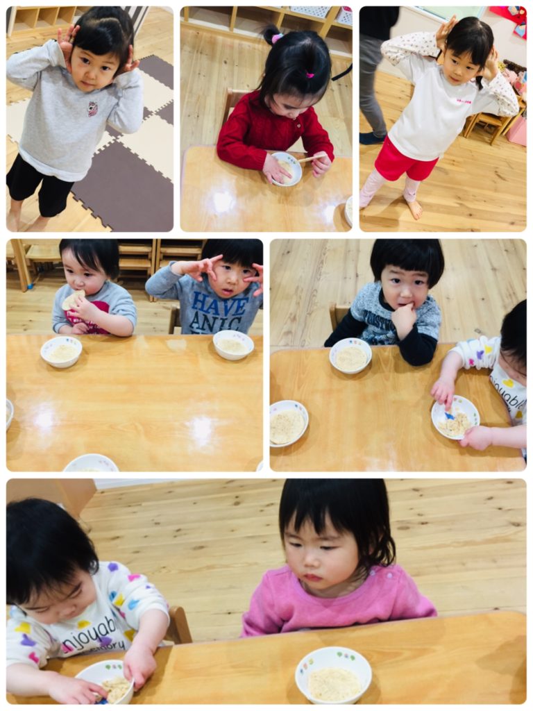 朝のおやつを食べるお友達♡