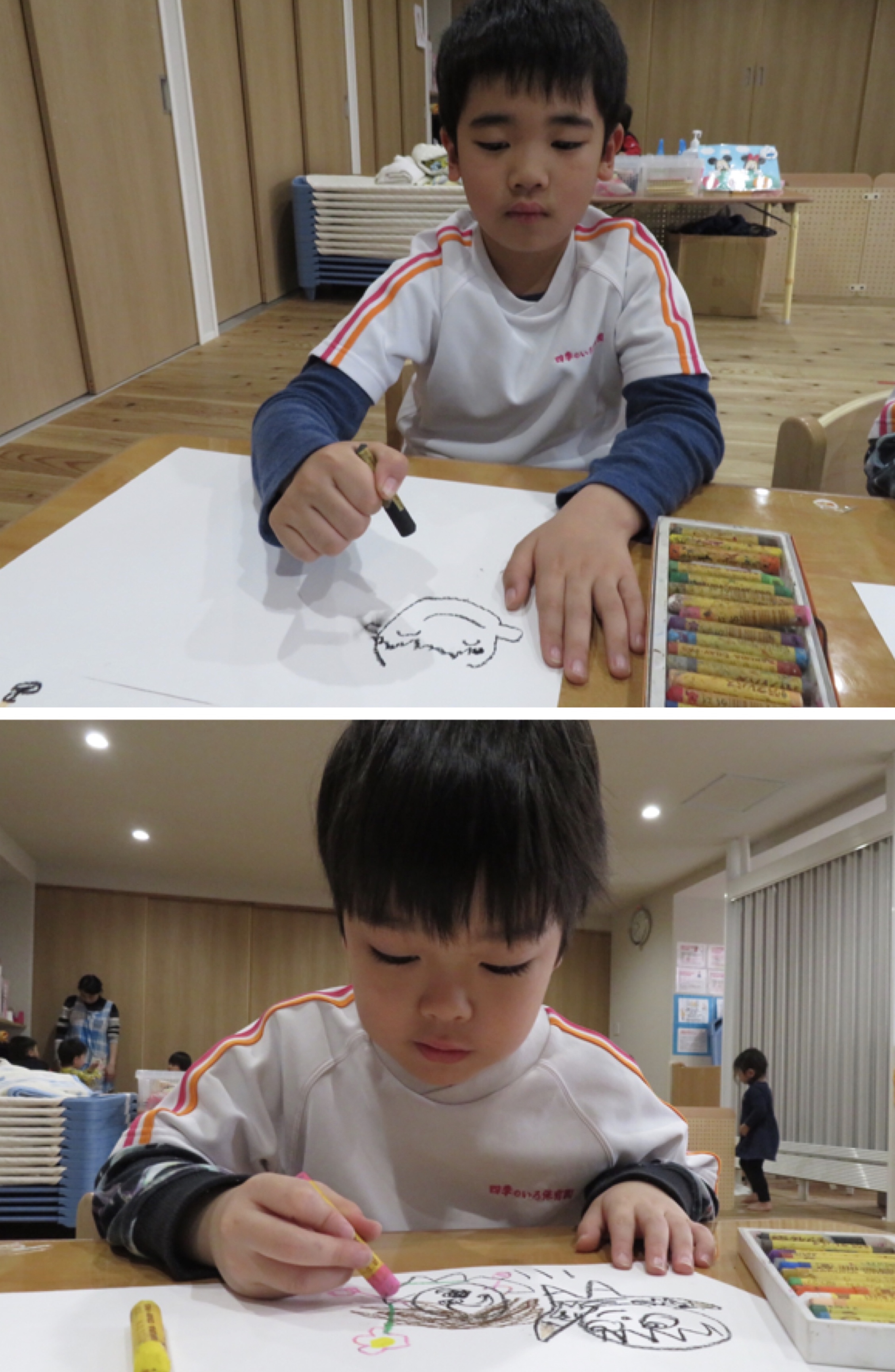 体を動かした後は、お絵かき・糸通し・パズル!