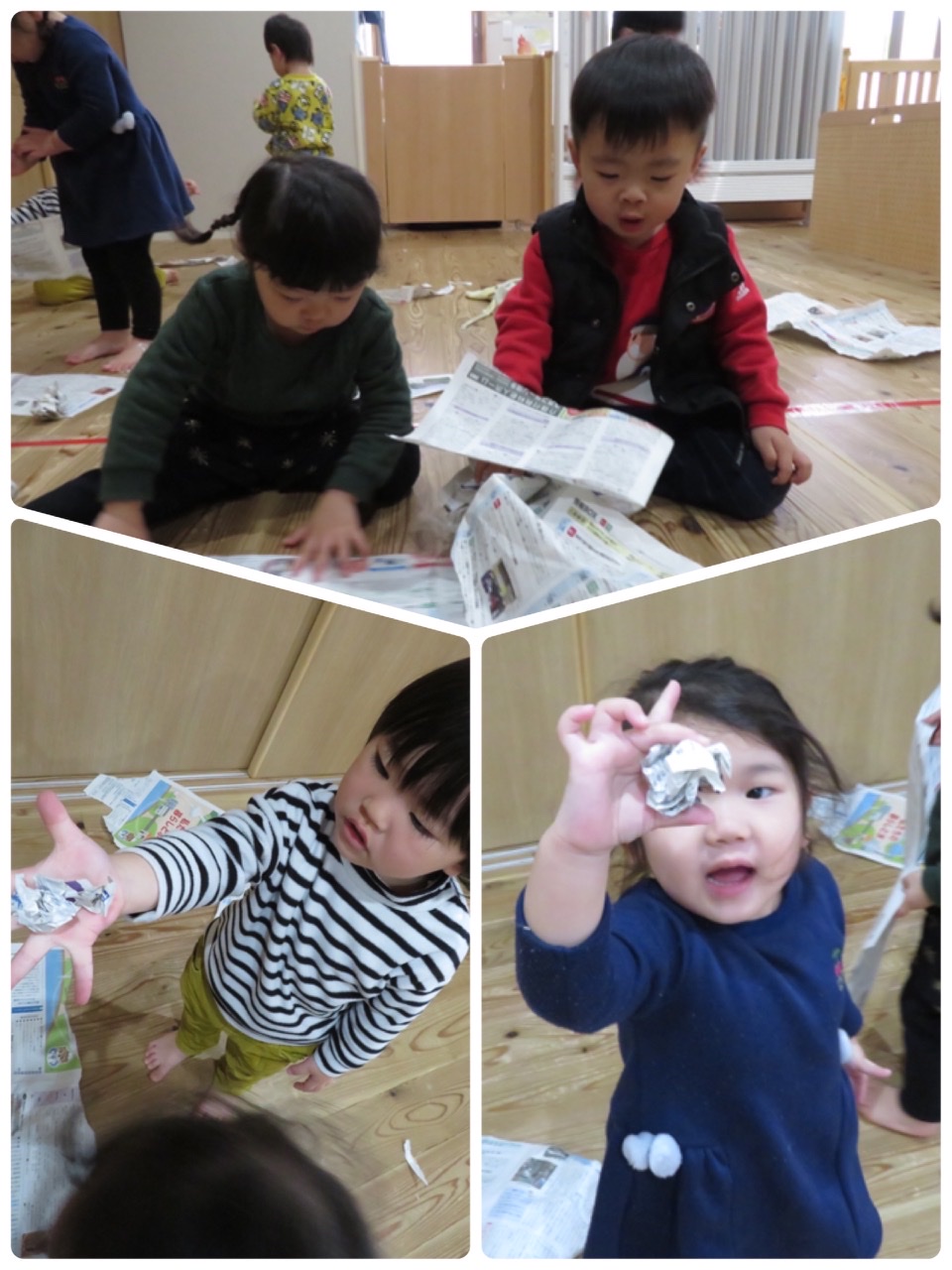 つき組さんは、新聞紙遊びをしました!!