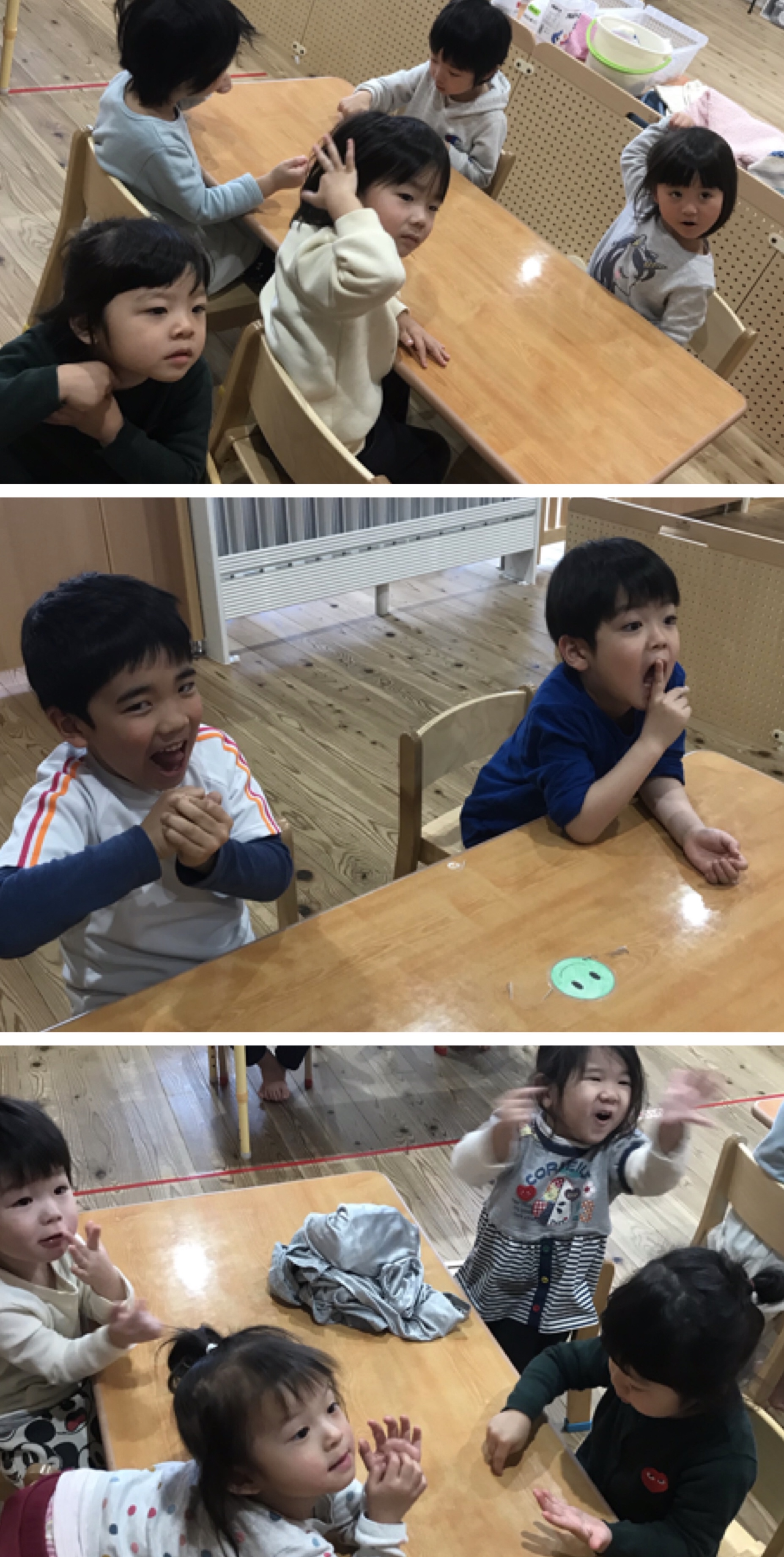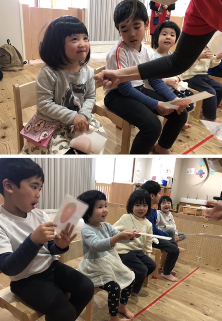 今日英語教室で教わったことを、みーんなで繰り返し練習をしました(≧∇≦)