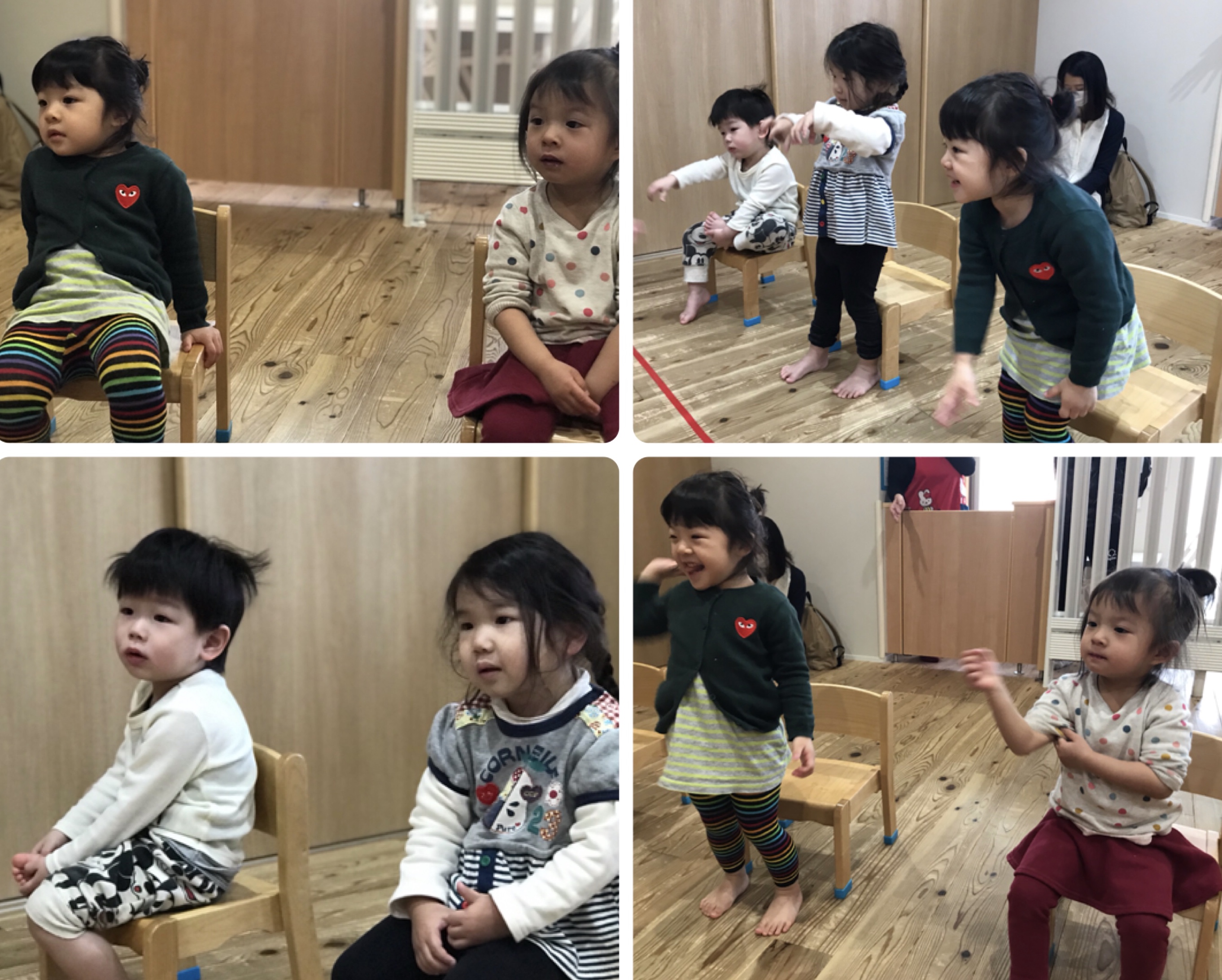 英語の歌に合わせてお花を作り、楽しく踊ったお友達です。