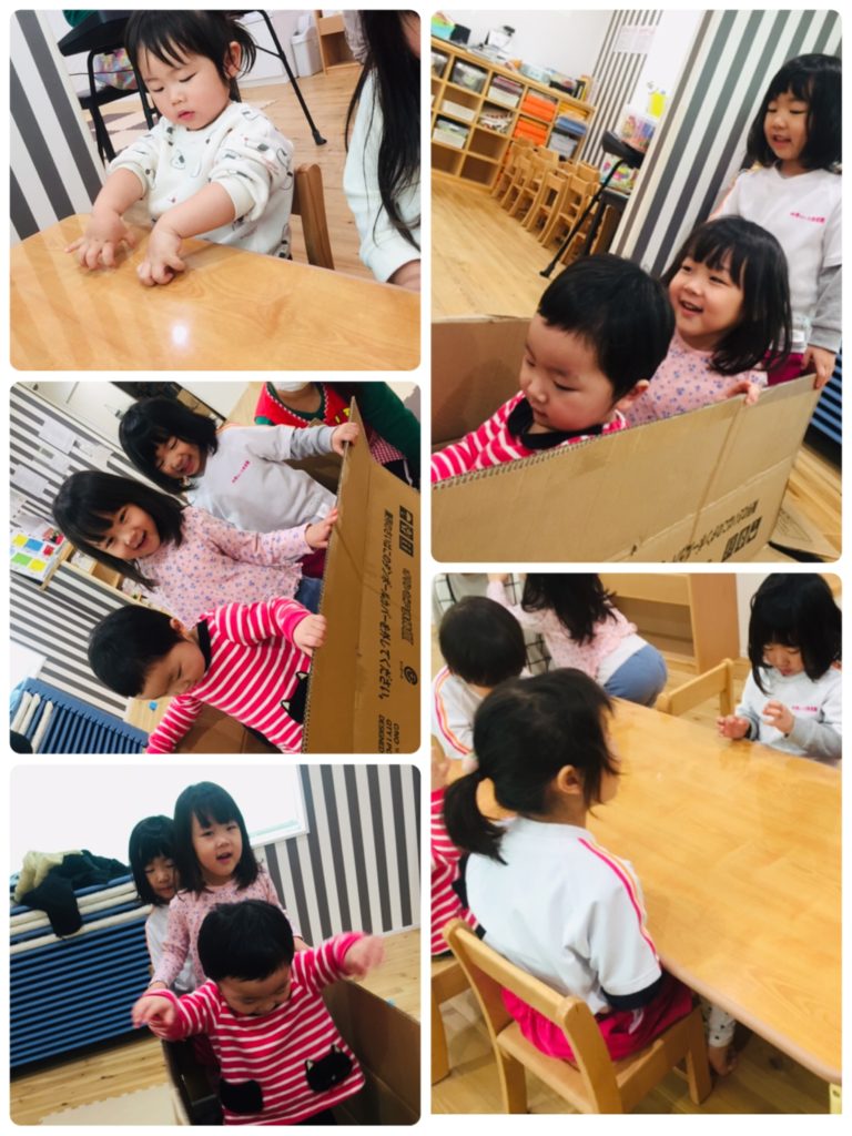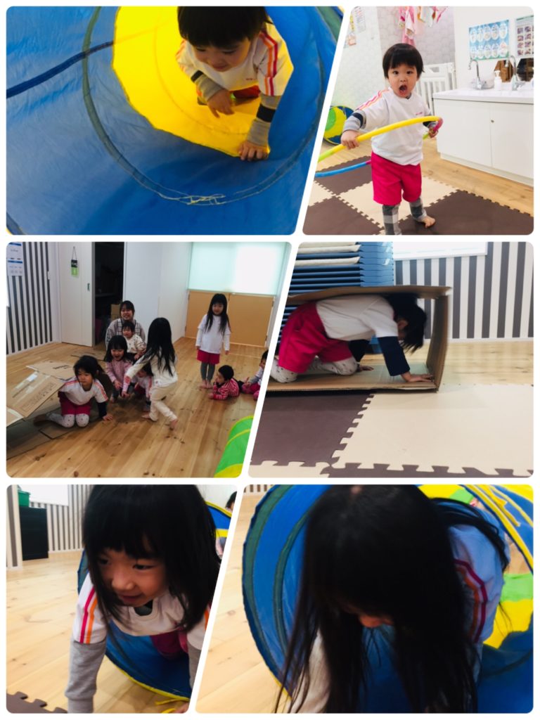 こんにちは☆吉塚園です♬ 最近暖かくなってきましたね(*´▽`*) でも今日は曇り空… 登園してきた順に楽しく遊んでいました☆彡 大きな段ボールにみんなで入って電車ごっこ~ さぁ! みんな登園で集まったので準備体操! 準備体操をしっかりした後は障害物レース!! 頑張れー!! と沢山の声援(*^^*) 沢山遊んで沢山お昼ごはんを食べたからしっかりお昼寝出来たらいいね♡ また明日も沢山楽しく過ごそうね(*ノωノ)