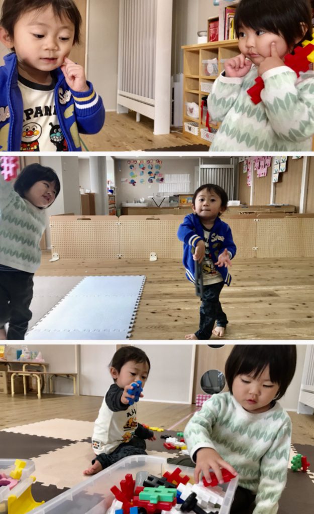 「ブロックやめる!」と言って、お片付けを2人でがんばりました(*^_^*)