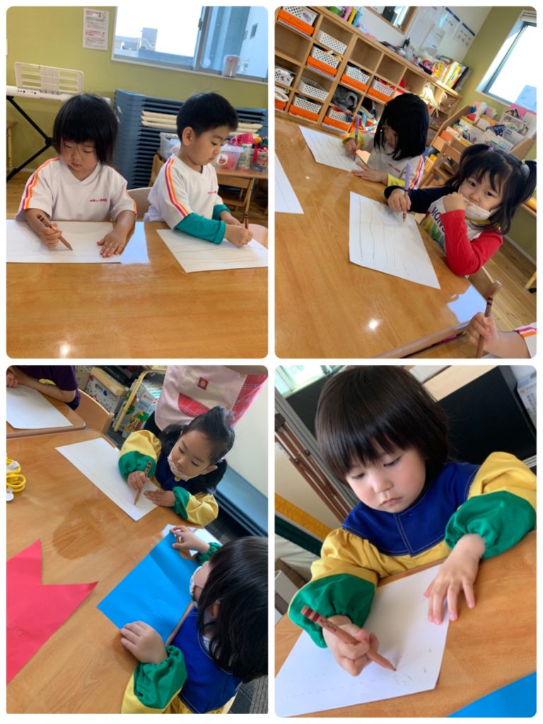 あおぞら、にじ、ひかり組は朝から鉛筆の練習(*´▽`*)