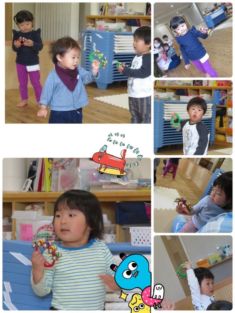 鈴を持ってリズム遊びも楽しみました!