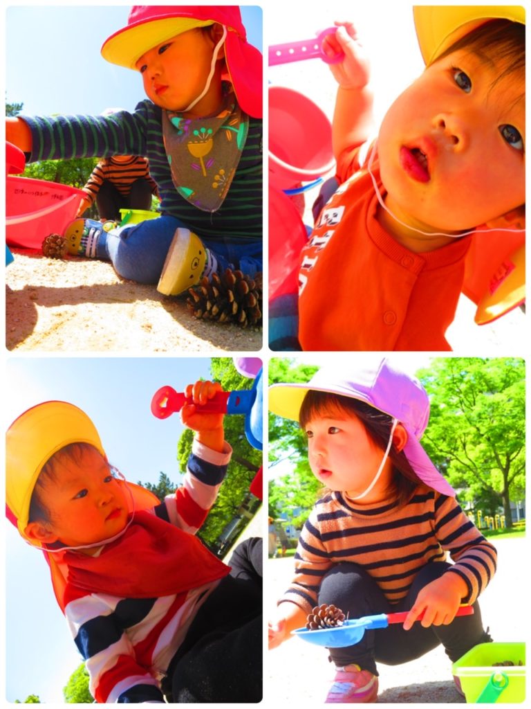 バケツに砂を入れる事に集中している子も(๑>◡<๑)