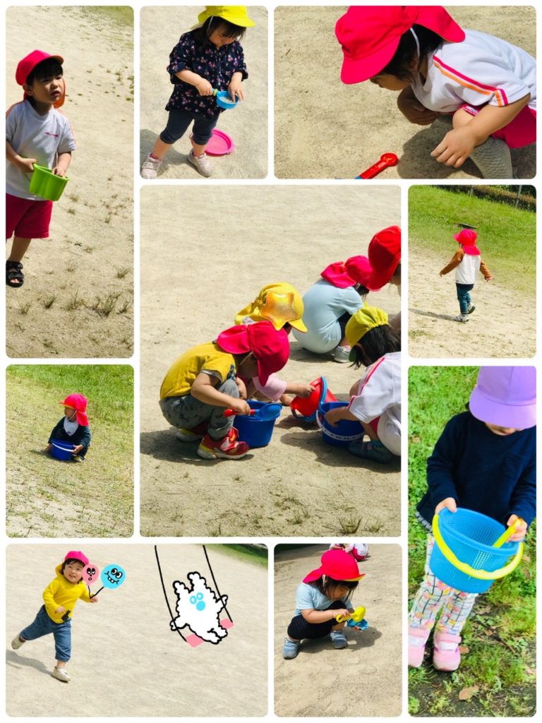 公園へつくと砂遊びにかけっこ、虫探しにお花摘みをして楽しみました!