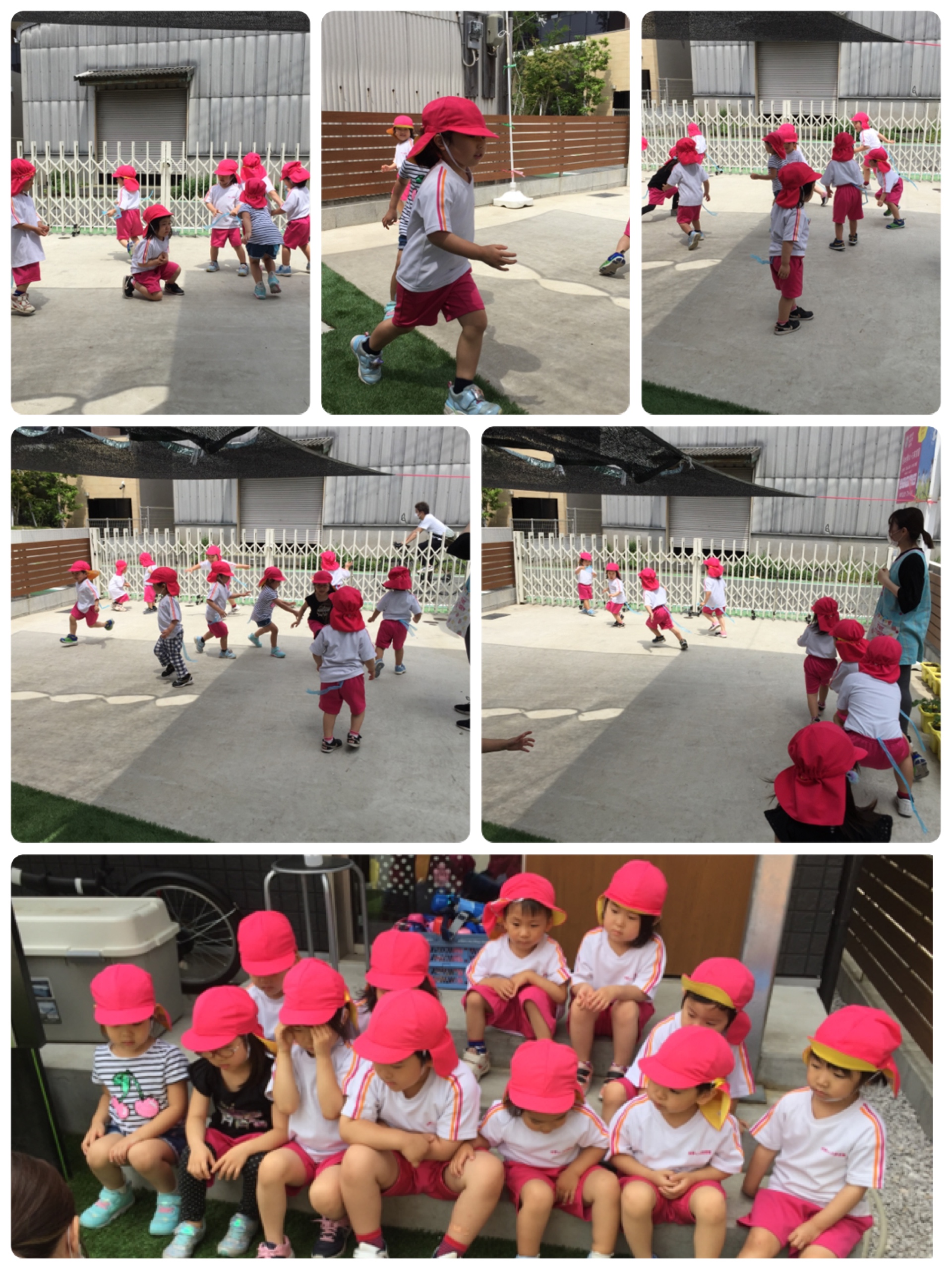 あおぞら組とにじ組とひかり組は久しぶりに園庭でしっぽとりをしました(*^▽^*)