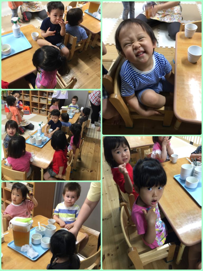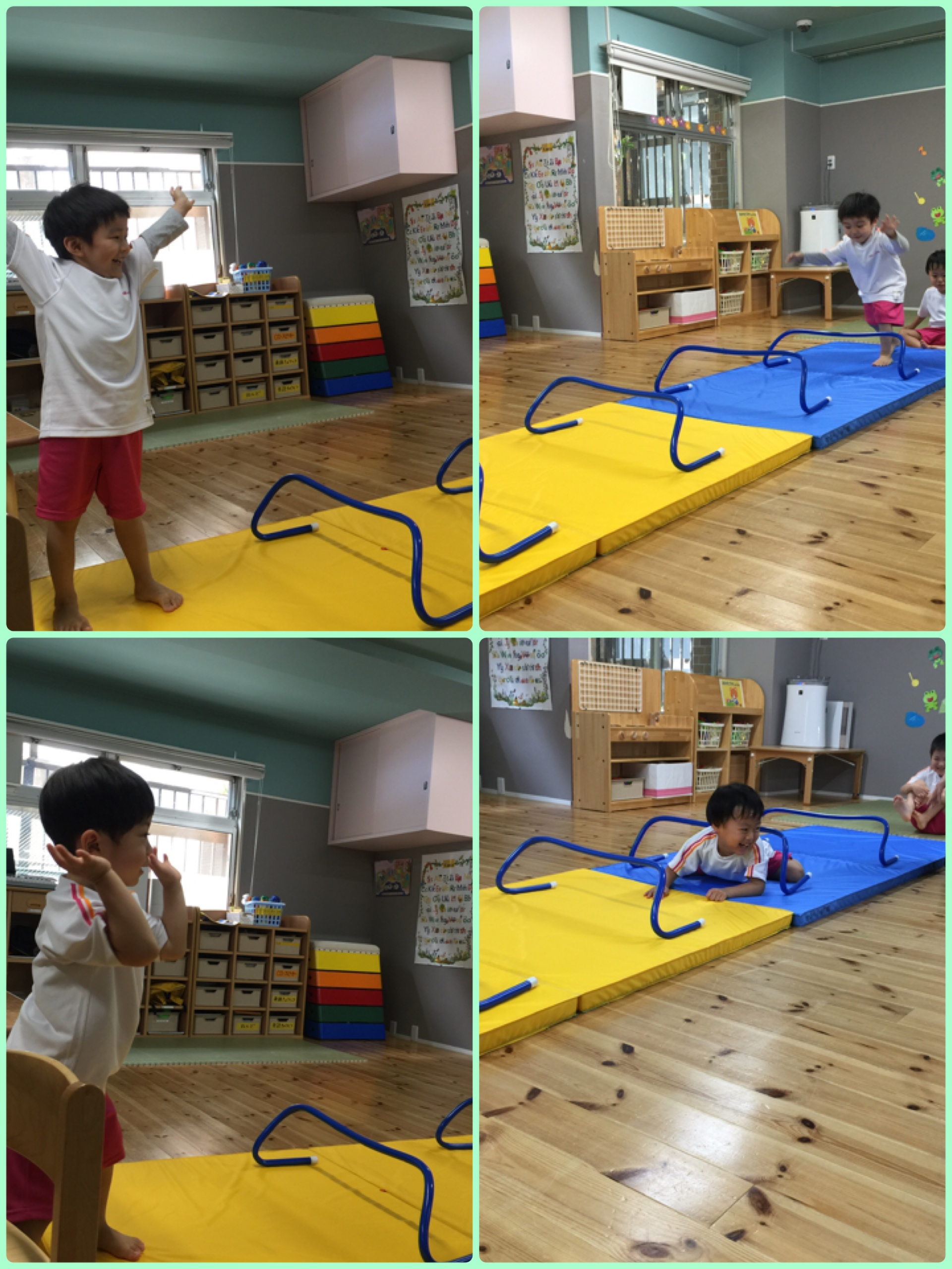 本日もお天気がよく、暑さがじりじりと… 汗をいっぱいかいた子どもたち、水分補給もしっかりとってます 運動遊びでは、子ども達もパッ!と最後に決めポーズ☆ 得意気に決めてました