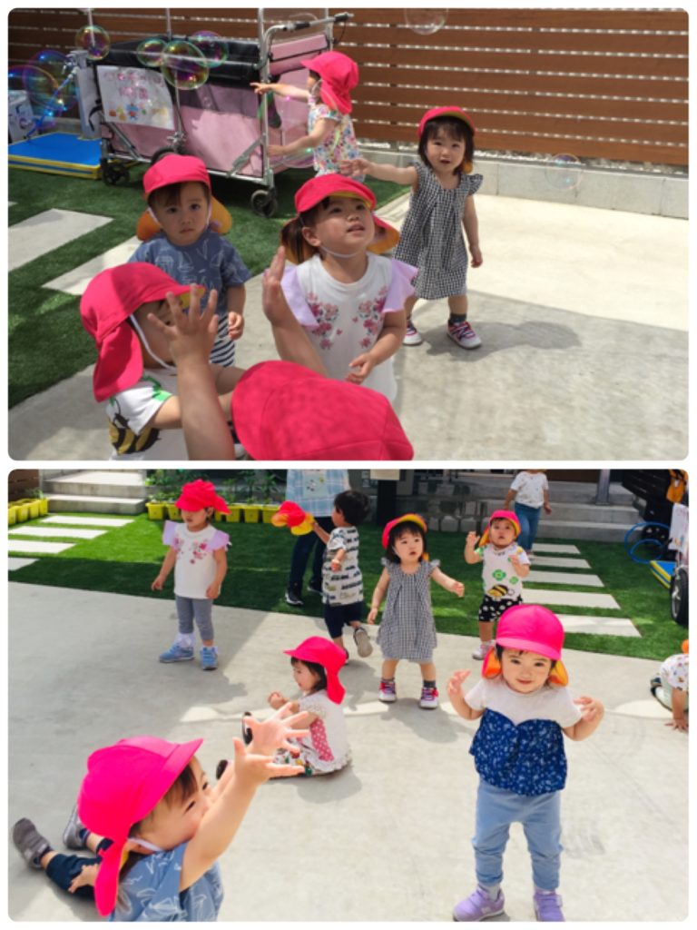 こんにちは!吉塚園です! 今日はとってもいいお天気だったのでお外でたくさん遊びました☆ ほしぐみさんとつきぐみさんはシャボン玉を追いかけて楽しそう♪ あおぞらぐみさん、にじぐみさん、ひかりぐみさんはみんなで追いかけっこ!! また、朝顔や夏野菜の観察もしました! 早く大きくなぁーれ✨