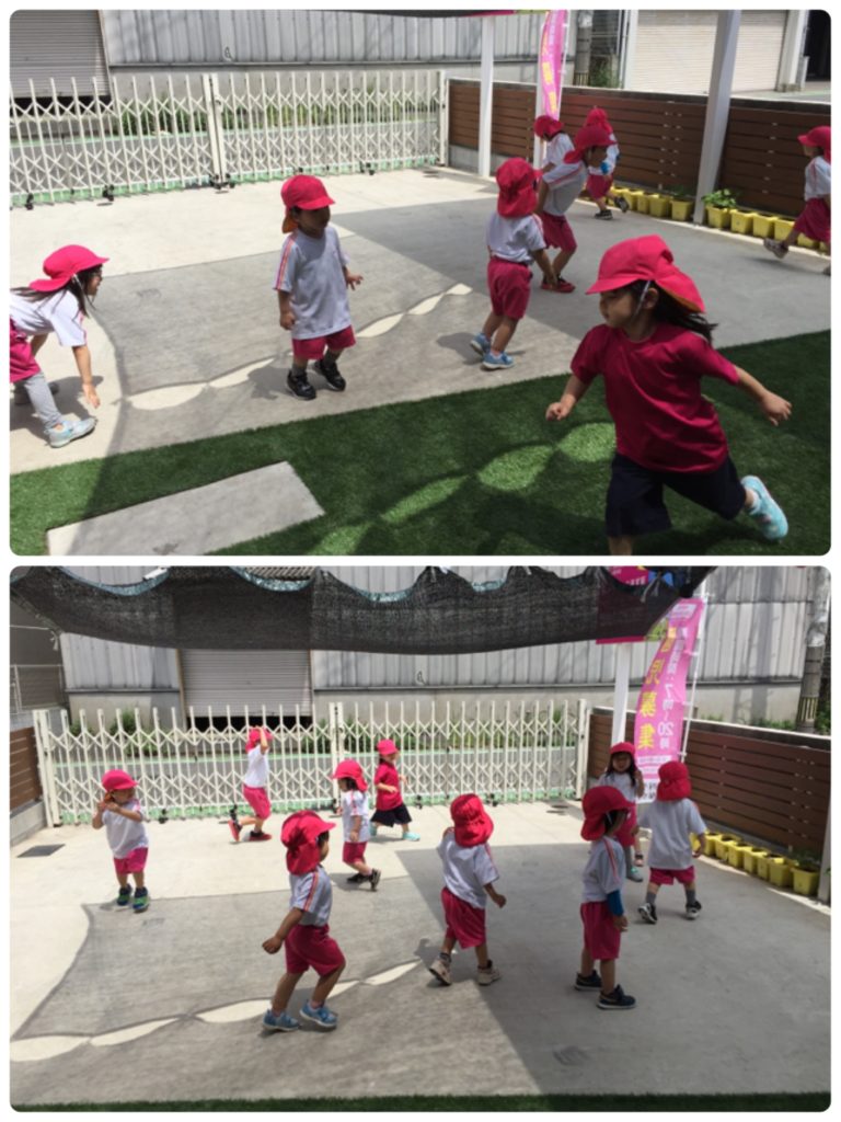 あおぞらぐみさん、にじぐみさん、ひかりぐみさんはみんなで追いかけっこ!!
