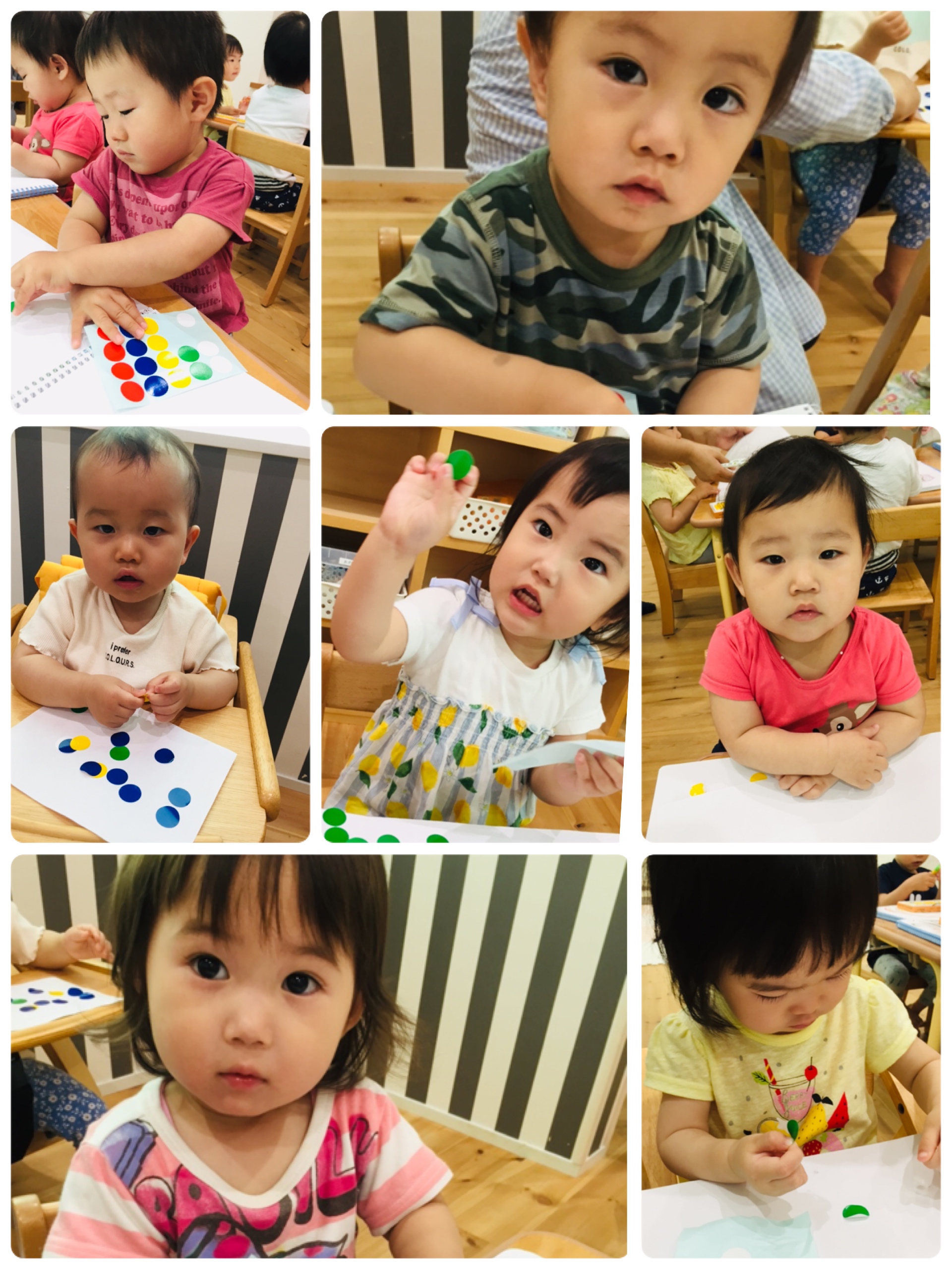 ほし組さんは小さなシールを自分で取って真剣に貼っています☆