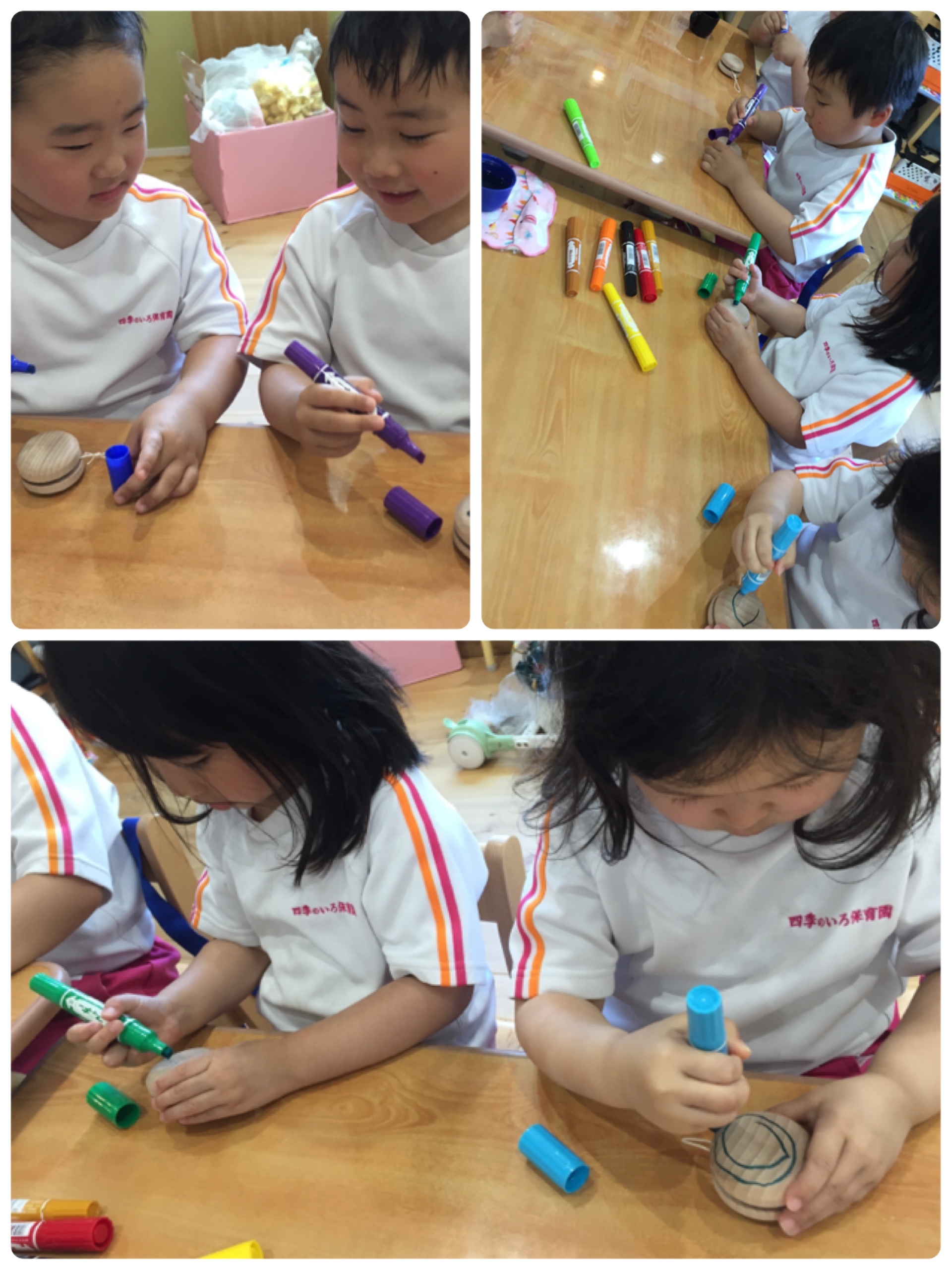 自分のヨーヨーや竹とんぼにカラフルに色を塗ったり絵をかいたり♬