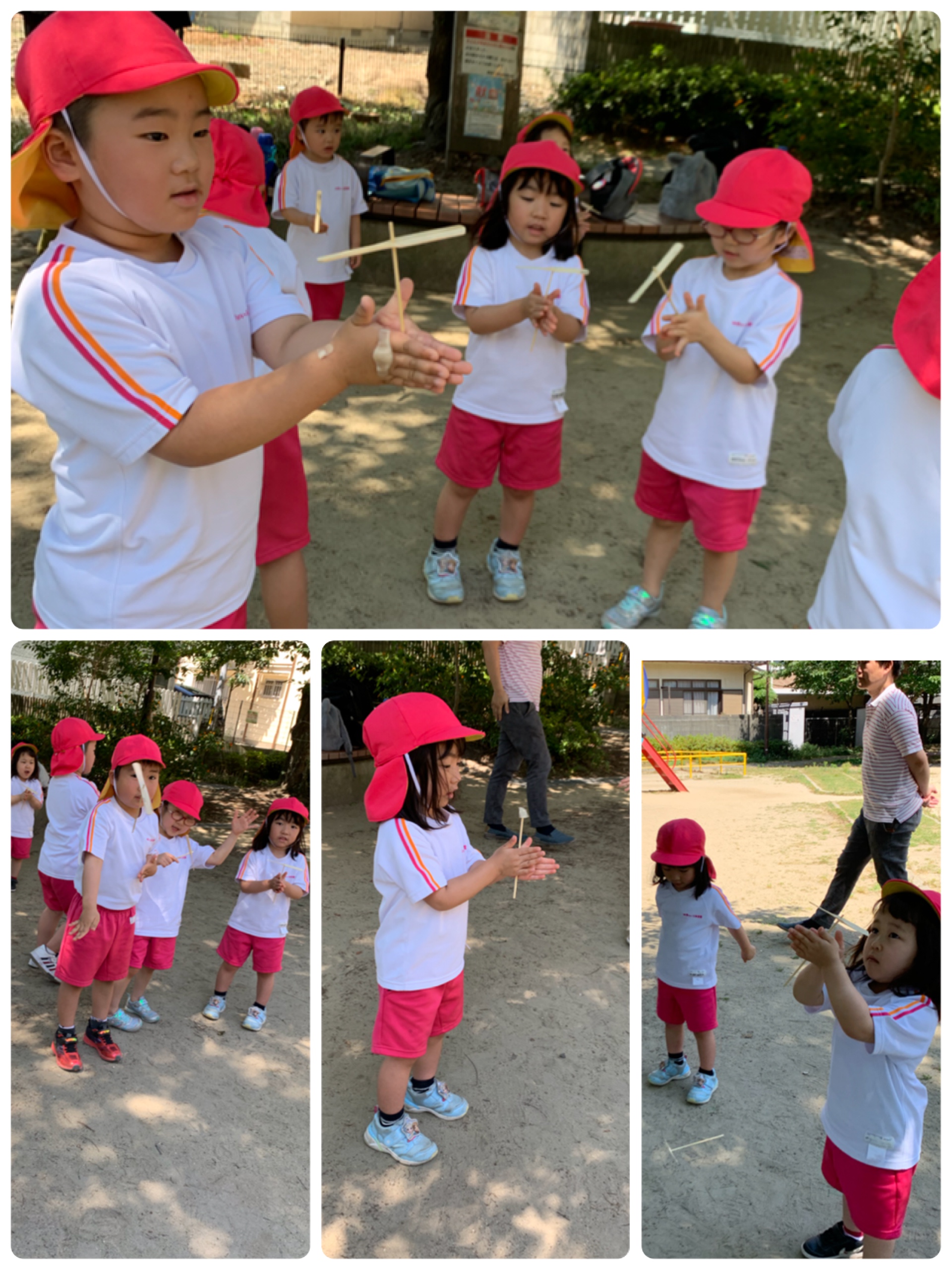 今日は竹とんぼとヨーヨーを一緒にして遊びました☆