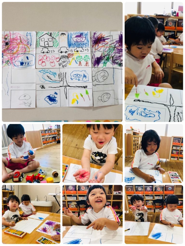 みんなが好きなように自由にお絵かきをして街が出来上がりました(*ノωノ)