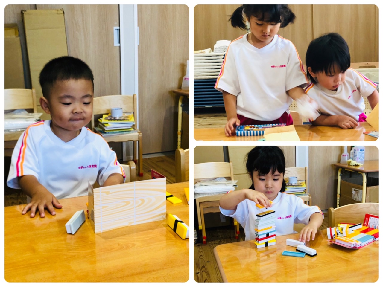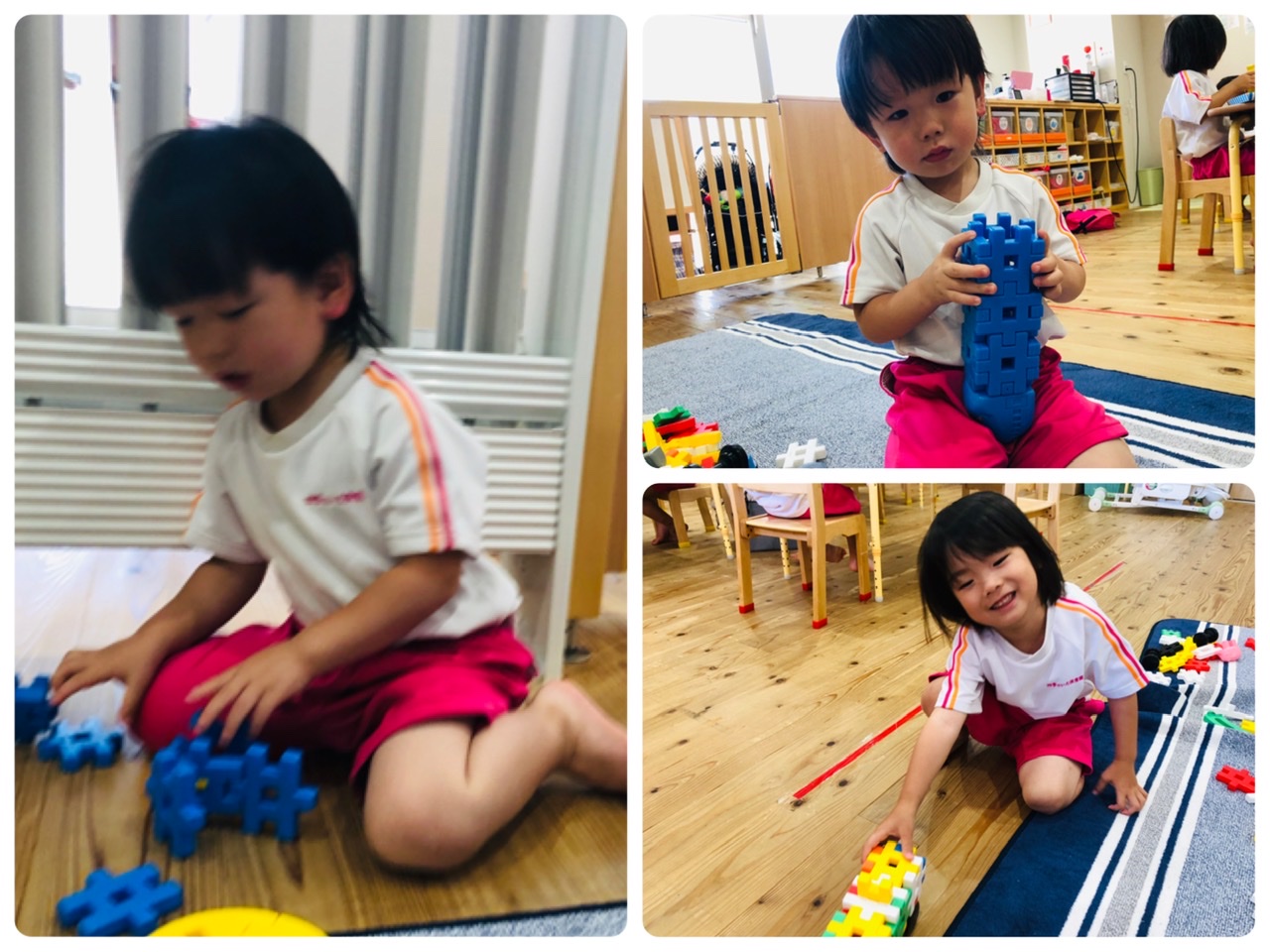 ペタンと、型を外したり、遮断機を作ったりと、とても楽しいそう(≧∀≦)その後は、ままごと遊びを楽しみました☆
