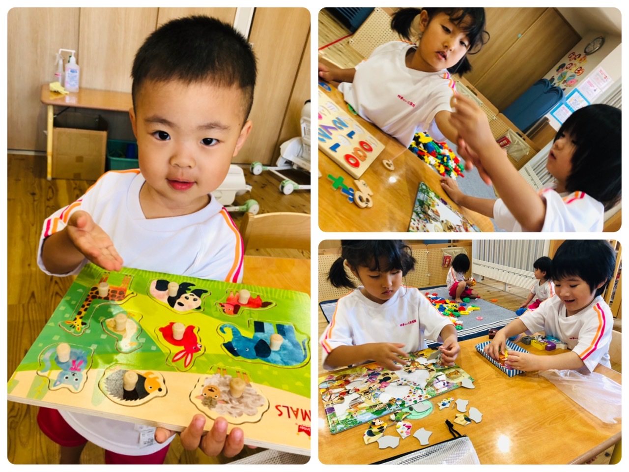 あおぞら、にじぐみは、大好きなおもちゃで楽しく遊びました。お寿司のおもちゃは、1番人気です。