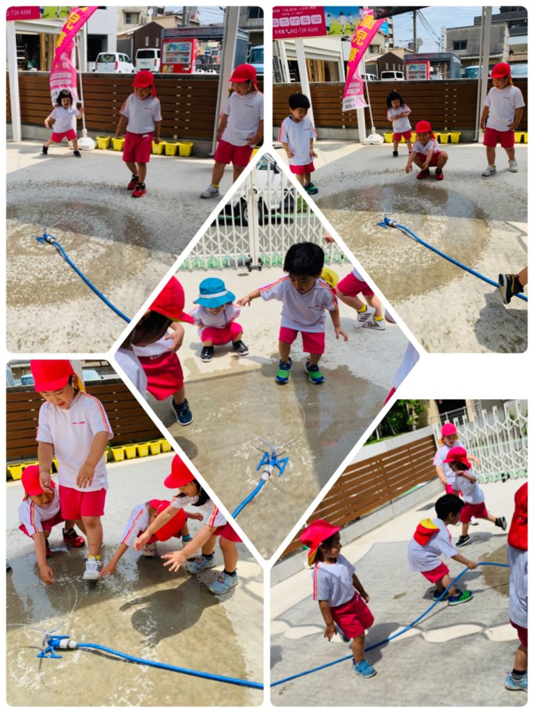 みんなホースから出る水から逃げて大はしゃぎです!!