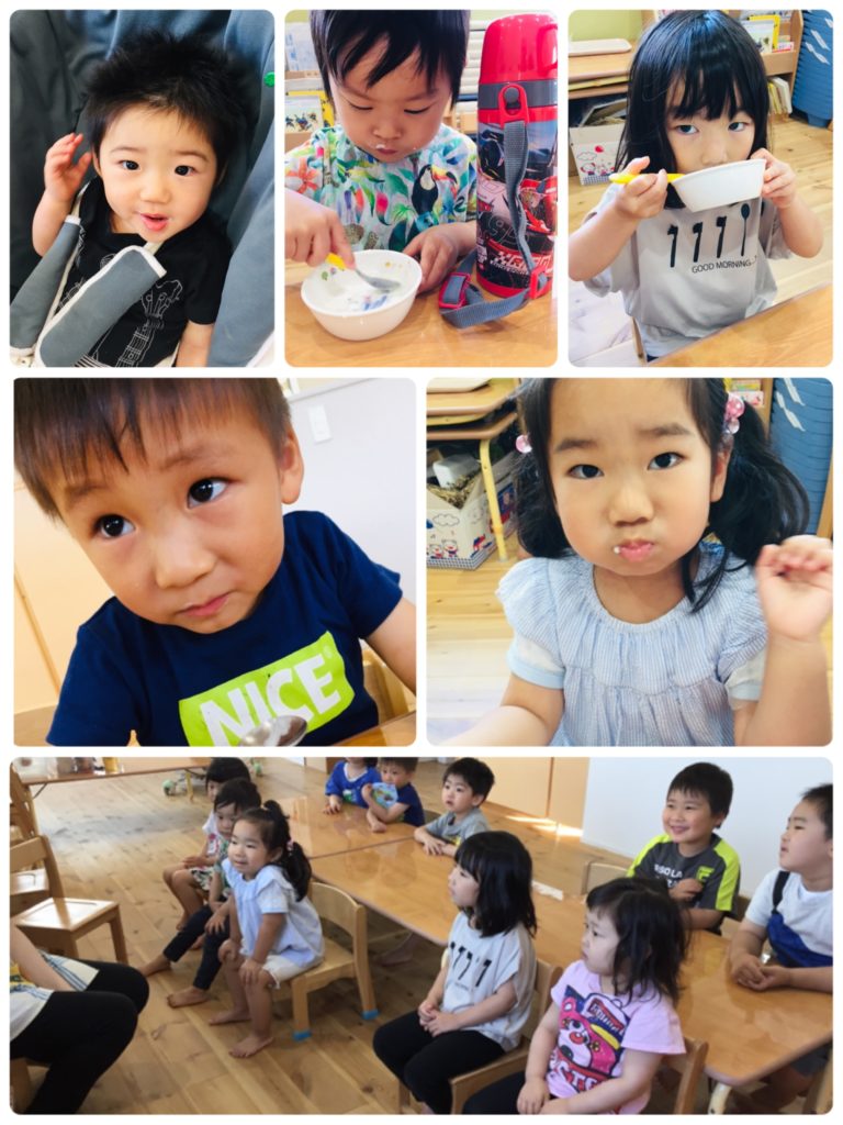 お昼寝の後はおやつの時間!今日のおやつはヨーグルトでした!