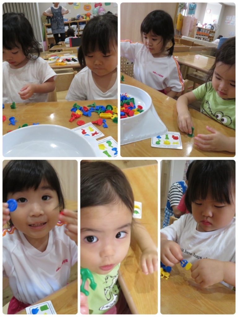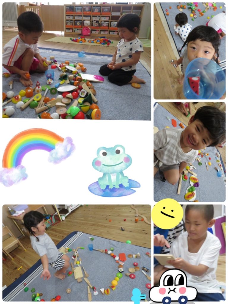 今日は、つきぐみ・あおぞらぐみ・にじぐみ・ひかりぐみでコーナー遊びを楽しみました。