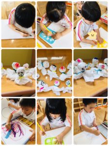 すっごくノリノリに踊っていたお友だちとまだ恥ずかしいお友だちと( *´艸`)