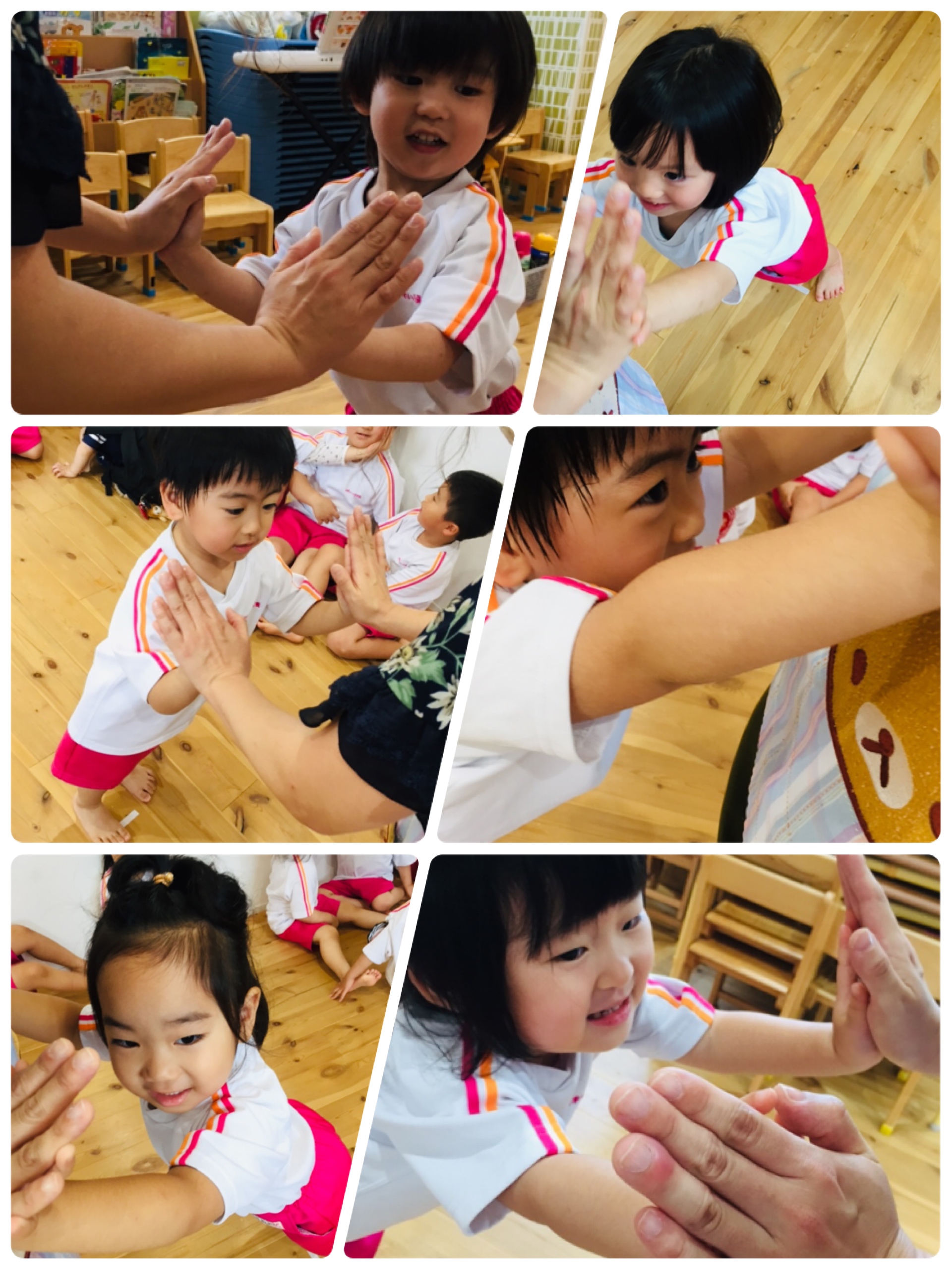 あおぞら組、にじ組、ひかり組は先生と押し合いっこ( *´艸`)