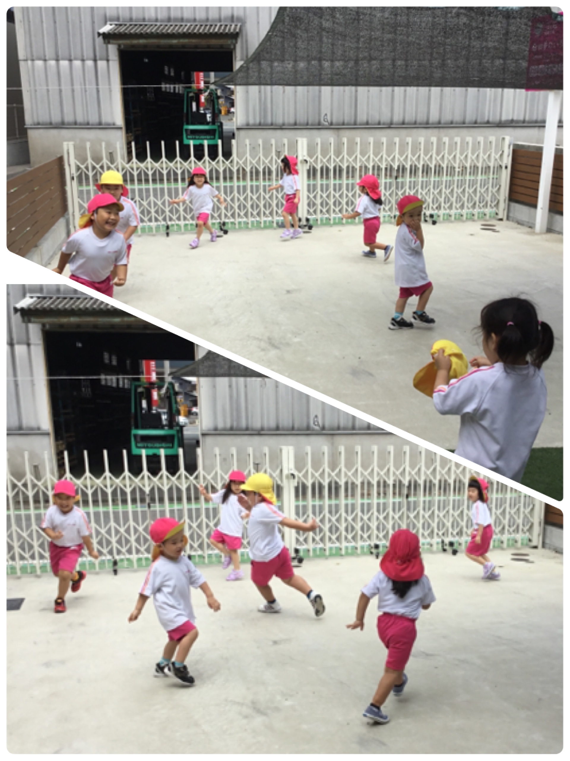 走って走ってみんなで逃げ回って、Kくん先生に捕まえられちゃった♡